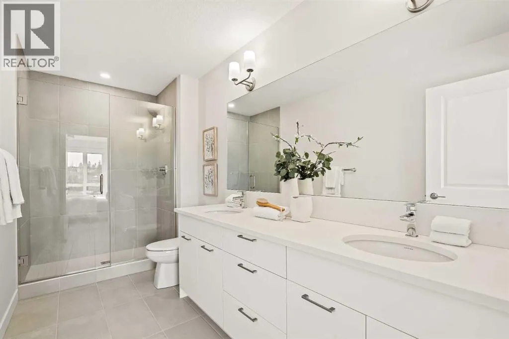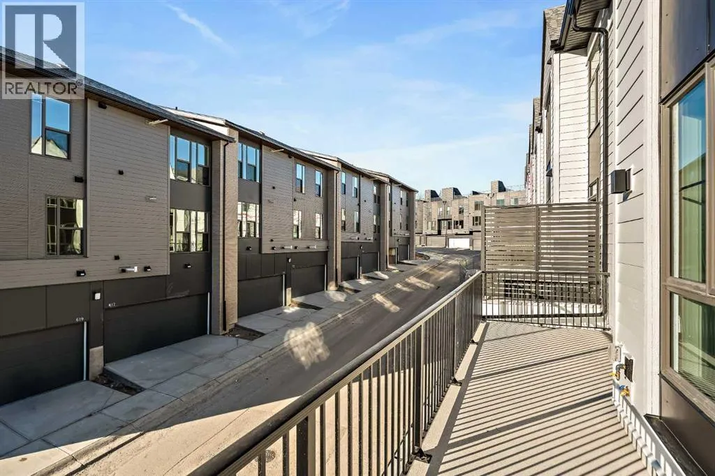 day, creating a bright and comfortable living environment. The bright and open main living area showcases a stunning kitchen with endless upgrades, including built-in appliances, quartz countertops, and timeless white cabinetry. Designed with entertaining in mind, the kitchen flows seamlessly into the expansive main living area, creating the perfect space for gatherings or everyday living. Large west-facing windows throughout the main level enhance the sense of space and light, creating a welcoming atmosphere year-round. The impressive great room offers ample space for virtually any furniture configuration and opens directly into the large dining area, allowing for a seamless transition between spaces. The main level is complete with a 2-piece powder room and direct access to the sprawling 26′ balcony that spans the width of the home. The outdoor living space is equipped with a BBQ gas line and hose bib, adding everyday convenience and making it easy to enjoy outdoor living. The upper level has been thoughtfully designed, with the primary suite spanning the width of the home while the secondary bedrooms and main bathroom are positioned on the opposite end for added privacy. The ~12′ x 12′ primary bedroom easily accommodates a king bedroom suite and includes a walk-in closet and private 4-piece ensuite featuring dual sinks and a walk-in tiled shower. The upper level is completed by two additional bedrooms, a full bathroom, and convenient upper-floor laundry. The flexibility of three bedrooms makes this home ideal for families, guests, or a dedicated home off ice, offering excellent long-term versatility and value. The entry level provides access to the private double attached garage, which includes additional space for storage along with a large dedicated storage room, keeping everything organized and secure year-round. Located in Crown Park – one of Calgary’s last remaining inner-city developments – just minutes from downtown, this home offers exceptional convenience with major transportation routes, amenities, and green spaces all close by. Perfect for first-time buyers, investors, or those seeking a lock-and-leave lifestyle with maintenance-free living, this brand new home is backed by a comprehensive builder warranty and Alberta New Home Warranty, allowing you to purchase with confidence and peace of mind. **Please note: Photos are of a previous show unit and are not an exact representation of the property for sale. (id:64429)