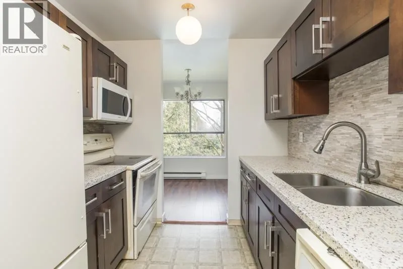 WOODRIDGE ESTATES-1st time on the market, spacious 2 bedroom and 1 full bathroom, tucked into this popular and convenient location in the core of Richmond. Freshly painted in neutral tones, with laminate flooring throughout the main living area. Wood burning fireplace with brick façade. Galley kitchen with dark wood cabinetry, white appliances, and stone counters. Generous bedrooms, both with carpet