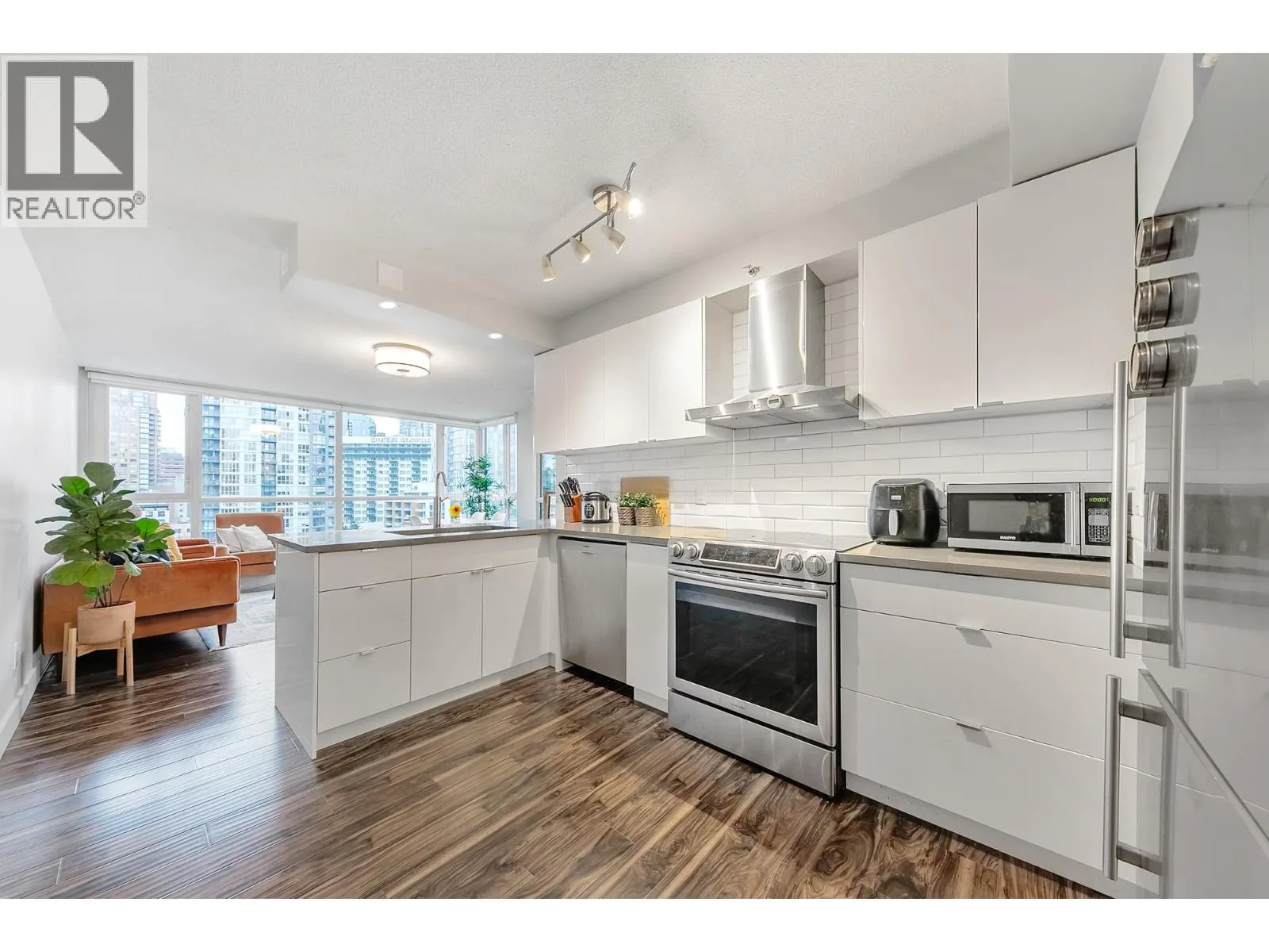 LOCATION, LOCATION, LOCATION! Incredible corner unit with floor to ceiling windows & LOTS OF LIGHT!!! 2 Large Bed, 2 Full Baths + 1 Solarium & 1 Den will have you living your best lifestyle in prestigious Yaletown. Fully & expensively renovated with German engineered Harwood Floors, this large home offers an open concept kitchen with state of the art appliances
