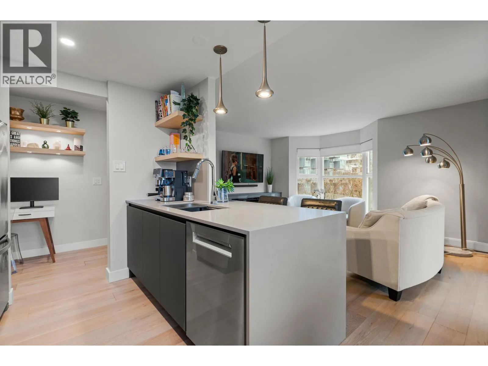 Welcome to this beautifully renovated nearly 1,000 square ft residence in the heart of Yaletown. Thoughtfully designed with an exceptional layout, this bright home offers expansive living spaces and large bedrooms. Featuring designer finishes, custom millwork, California Closet storage, a sleek electric fireplace, and a built in bar with wine fridge, it is perfect for entertaining. The second bedroom includes
