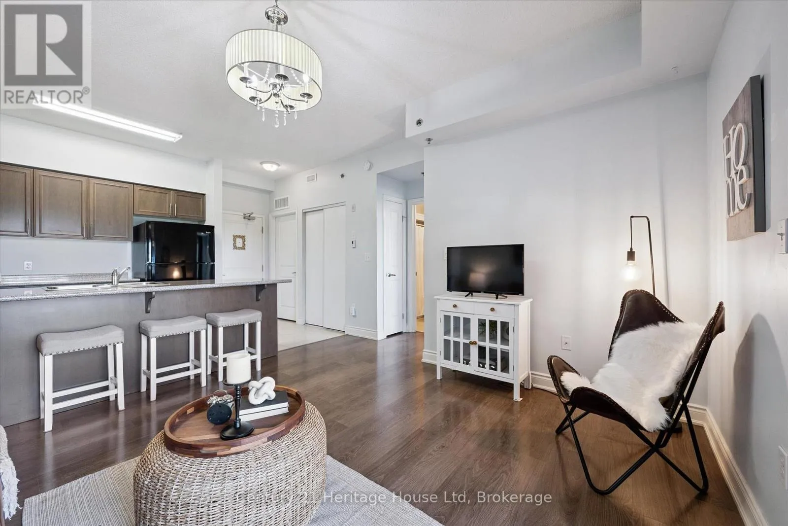 Welcome to this beautifully maintained top-floor 1-bedroom condo in Guelph’s highly desirable south end. Nestled in a quiet, well-kept building, this bright and inviting unit offers the perfect blend of comfort and convenience. Step inside to a carpet-free interior featuring a functional open-concept layout, ideal for both everyday living and entertaining. The spacious bedroom includes a walk-in closet, providing ample