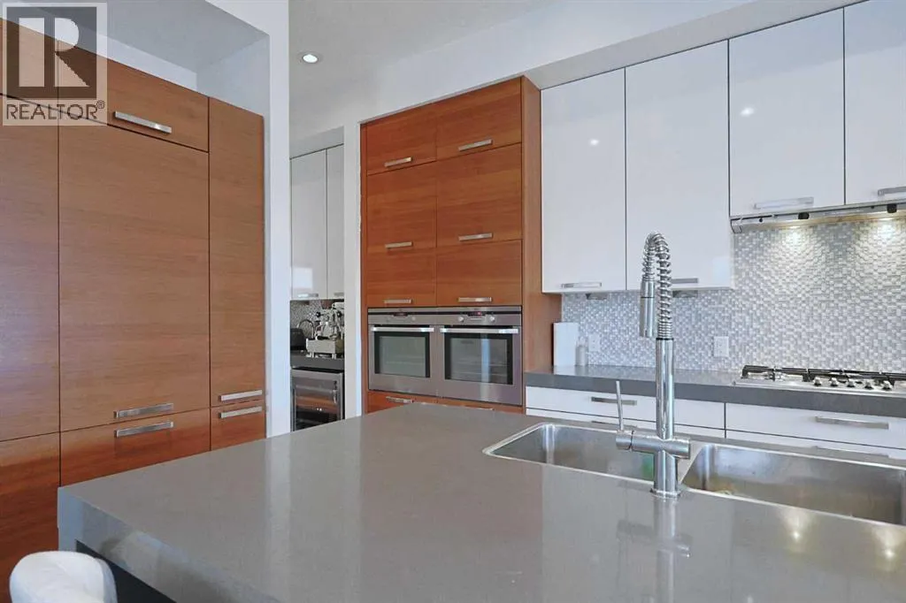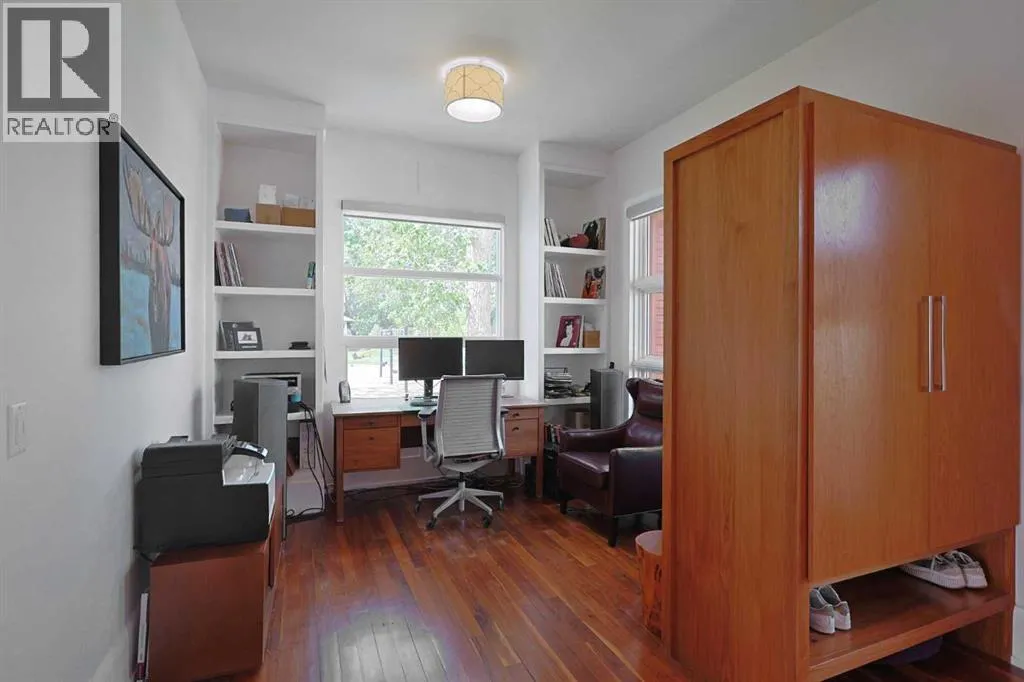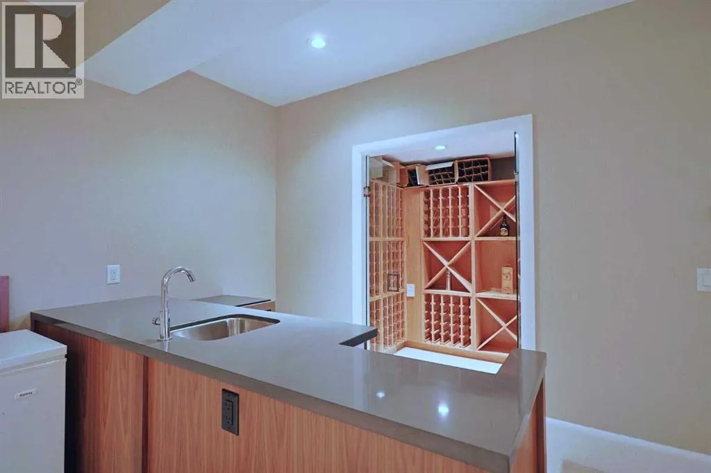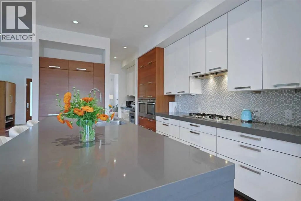 oversized & heated 2 car garage plus a host of upgrades including high-end appliances, central air & steam shower, South backyard & partial downtown views. Original owner of this fully finished executive home, with a sensational main floor with 10ft ceilings, spacious formal living room with paneled feature wall, open concept home office with built-in shelving & sun-drenched family room with sleek contemporary fireplace complemented by built-in cabinets. The exquisitely-designed kitchen is fully-loaded with all the bells & whistles…2-toned cabinets & quartz counters, undercabinet lighting, butlers pantry & pull-out spice drawers, quartz waterfall island & top-of-the-line appliances including Electrolux AEG double ovens & gas cooktop, Liebherr fridge & Miele hoodfan. Head on upstairs to the 2nd floor & 3 fantastic bedrooms…each with their own ensuites. The owners’ retreat will be your private sanctuary & it comes complete with a large walk-in closet & luxurious ensuite with free-standing soaker tub, glass steam shower with body jets & quartz-topped double vanities. There are walk-in closets & full ensuites in the other 2 bedrooms…which both face South & have partial downtown views. Completing the 2nd floor is the laundry room with LG steam washer & dryer, sink, built-in cabinets & separate access from the master bedroom closet. The lower level – with infloor heating, is beautifully finished with a 4th bedroom, bathroom with shower, exercise room & rec room with wet bar & wine room. Additional extras & features include the main floor mudroom with built-in lockers, built-in ceiling speakers & underground sprinklers, low-flow/dual-flush toilets & low-maintenance South backyard with concrete deck & patio. The low-maintenance South backyard is fully fenced & has a terrific 2-level concrete deck & patio, gas line for your BBQ & oversized detached 2 car garage complete with heater plus a parking pad which would perfect to park your RV or boat. Prime location in one of Northwest Calgary’s most desirable inner city neighbourhoods with walking distance to Broadview Park & bus stops, just minutes to the vibrant Kensington District, major retail centers, schools & downtown. (id:64429)