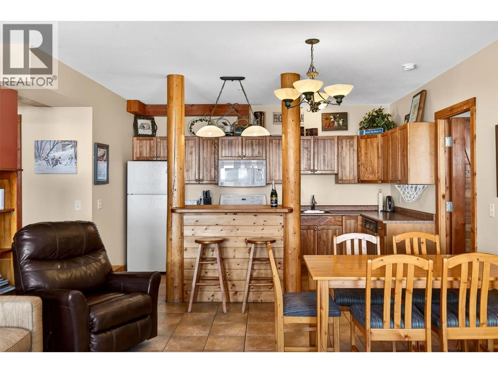 Welcome to The Grizzly, one of Big White’s most iconic and sought-after lodges. This two bedroom, two bathroom corner suite perfectly captures the spirit of “”Big White”” and is ready for you to move right in. Experience the warmth of mountain living in a fully furnished space designed for comfort. The open-concept floor plan features a nicely equipped sit-up bar