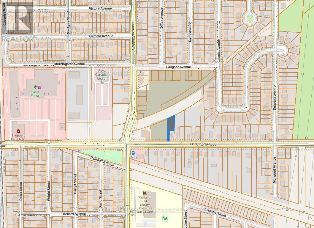 Vacant land opportunity in a central Welland location. Flag-shaped lot with approximately 16.44 ft frontage and 214.23 ft depth, offering over 10,000 sq ft. Zoned RL2. Located on Ontario Rd with close proximity to schools, transit, and amenities. Taxes approximately $1,255/year. HST in addition to purchase price (if applicable). (id:62650)