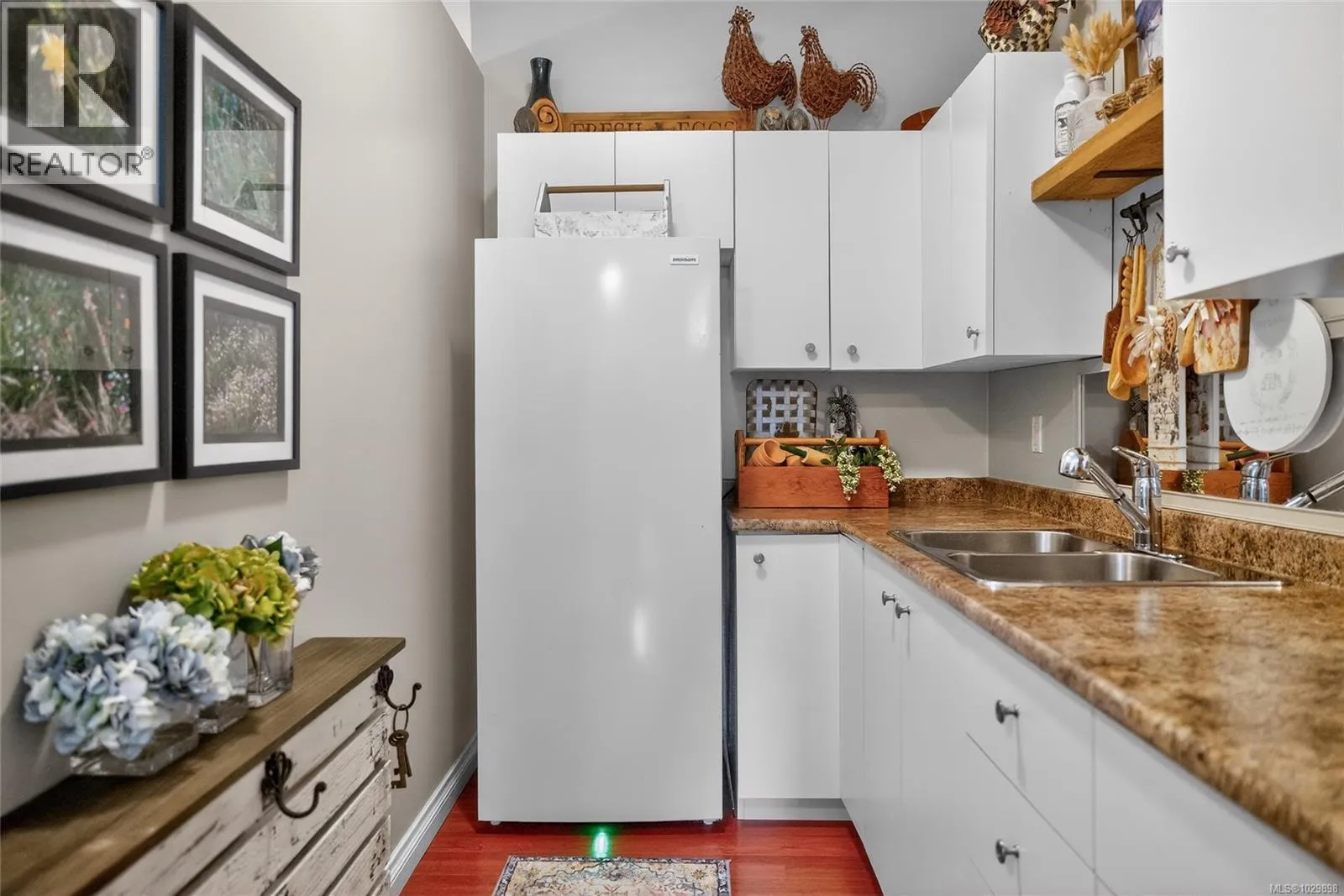Beautifully renovated luxurious 3 bedroom, 3 bathroom half duplex offering stylish finishes and comfort. The elegant living room features a custom built natural gas fireplace with mantle, bookshelves, and drawers, framed by a large picture window capturing mountain views with motorized remote control blinds. The stunning kitchen showcases quartz countertops, stainless steel appliances, and custom backsplash with access to a