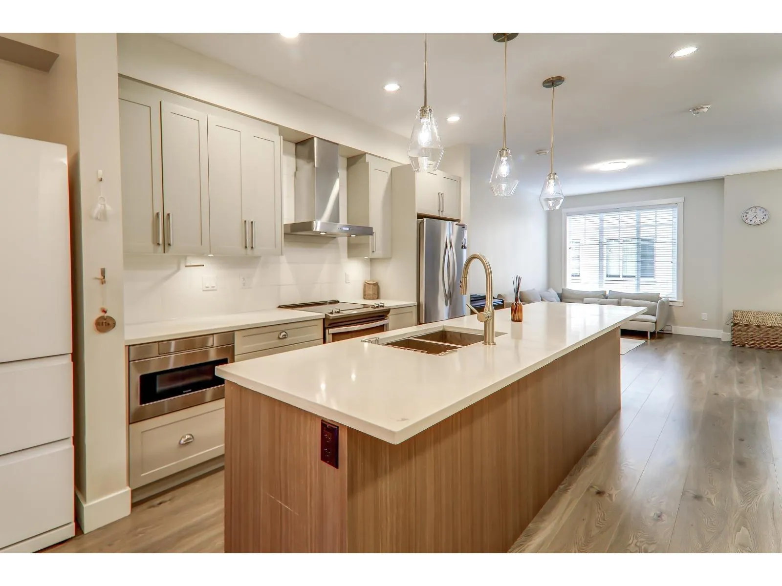 Welcome to the award-winning Gabriola Park in Willoughby Heights! This well-maintained 3 bed, 2.5 bath home features an open-concept layout with quartz countertops and stainless steel appliances. Enjoy a south-facing, fenced backyard with a private patio facing a tranquil greenbelt, perfect for relaxing or entertaining. Upstairs offers a spacious primary bedroom with a walk-in closet and ensuite, with 2 substantial