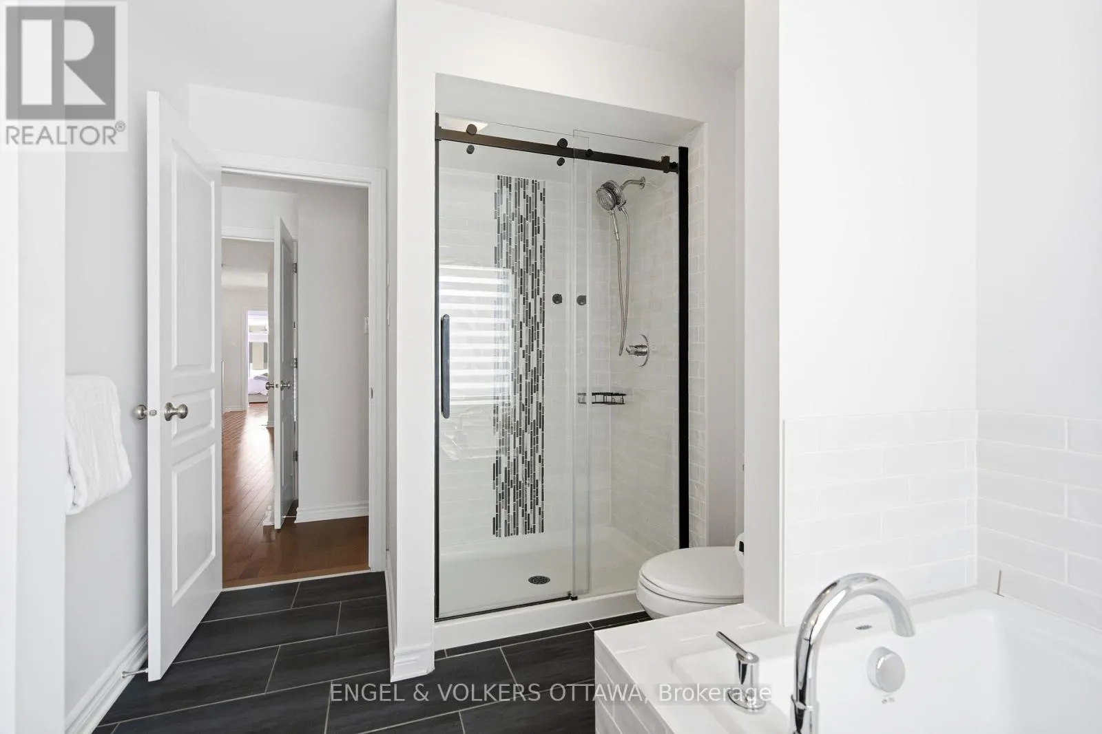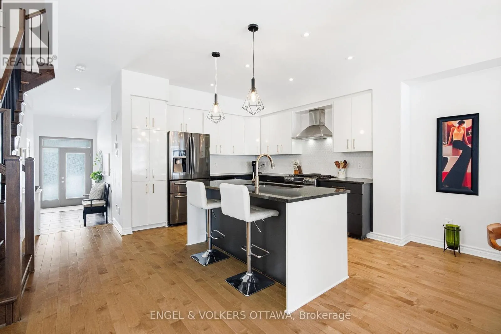 Welcome to Richcraft’s largest townhome model, featuring hardwood on both the main and second levels, 3 bedrooms plus den upstairs, and a private driveway with interlock for side by side parking. Step inside from the covered porch into a bright, open concept main floor with high ceilings and large windows that fill the space with natural light. The two-toned kitchen
