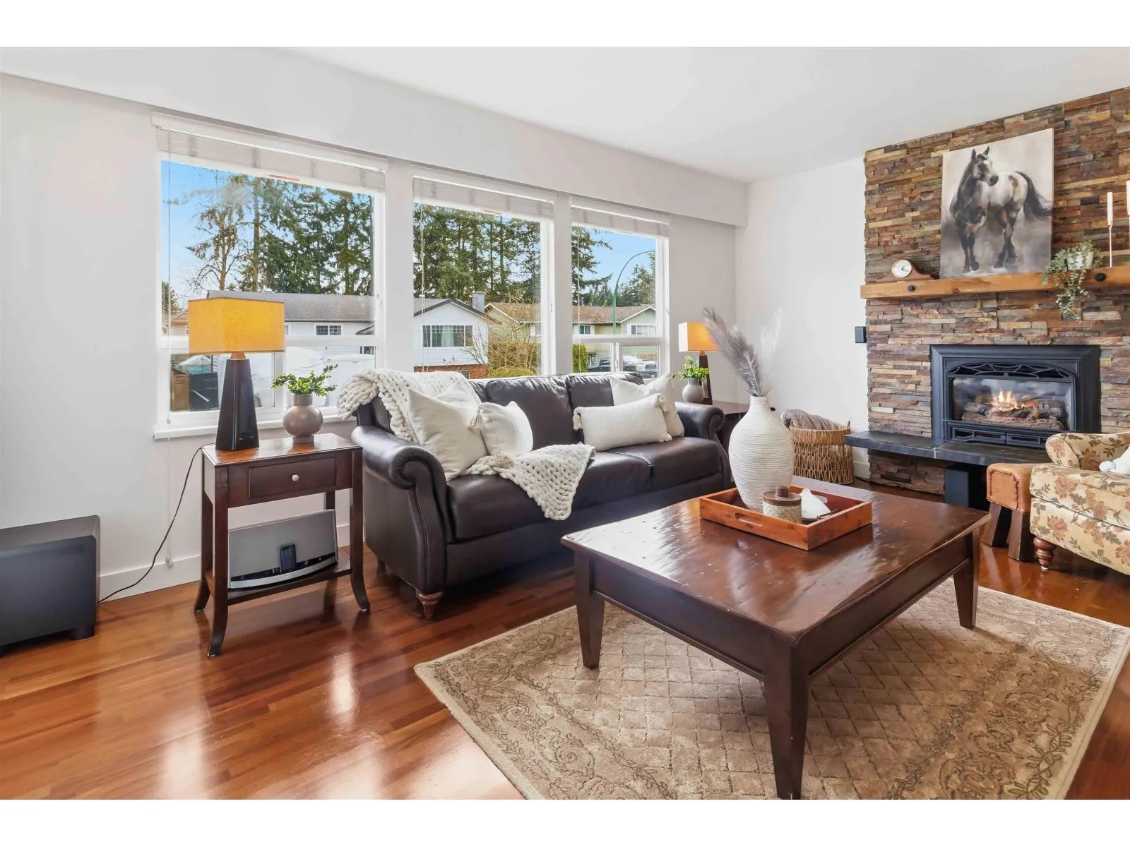Beautifully updated 5 bed/3 Full Bath home offering comfort & modern upgrades throughout. Features include newer roof, additional attic insulation, A/C, 200 amp service, EV hook up, 4 car garage/shop & 1 Bed Legal Suite. Bright interior with engineered hardwood floors, gas fireplace, fresh paint & updated kitchen with heated tile floors. Enjoy outdoor living with composite deck, patio, gazebo,