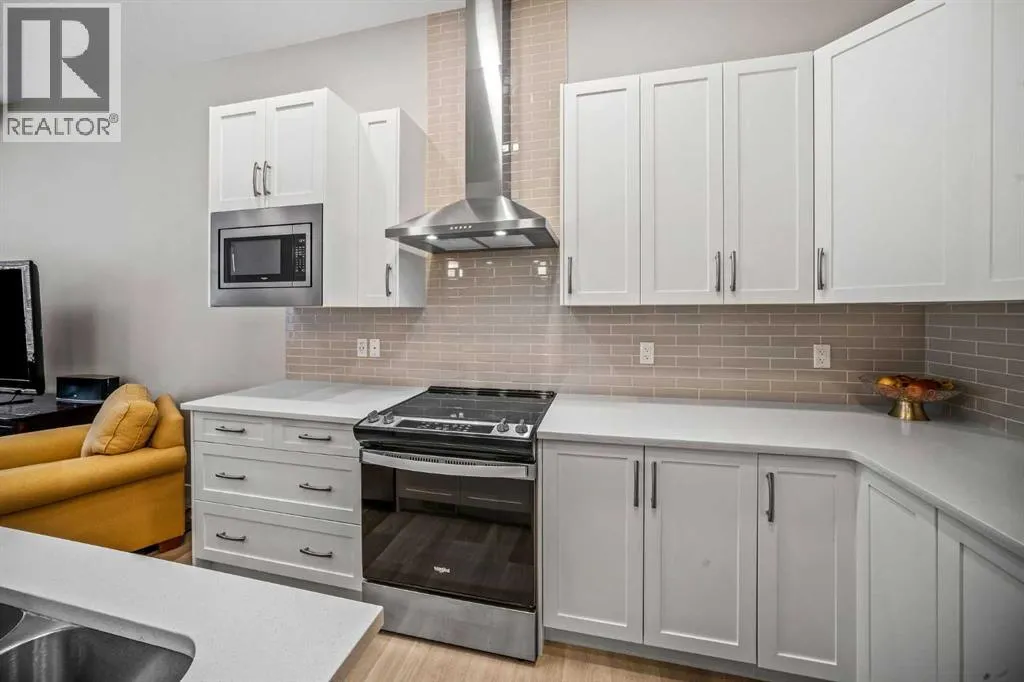 is thoughtfully designed with a fully finished basement and the comfort of A/C. Complete with a finished double attached garage, it offers the space of a detached house with the ease of condo living .Boasting 2,023 sq. ft. of thoughtfully designed living space, this beauty welcomes you with an inviting foyer, and an open-concept main floor that is ideal for both entertaining and everyday living, seamlessly connecting the living and dining areas to create a warm and functional gathering space.The well-appointed kitchen showcases a large quartz island and countertops, soft-close cabinetry with abundant storage, a built-in microwave, Bosch dishwasher, fridge with waterline and an electric stove (there is a gas line for a future upgrade to gas stove)—perfect for both casual meals and hosting guests. A gas line for BBQ is also located just outside the front door. A conveniently located half bath and direct access to the double attached garage along with a utility closet and shoe closet complete the main level. Upstairs, a bright and versatile nook for a home office or sitting area complements the wide hallways. The spacious primary bedroom comfortably accommodates a king-sized bed and features a private covered balcony with mountain views, a walk-in closet, and a 4 piece ensuite with dual quartz vanities. This level also includes a dedicated laundry room, a full 4-piece bathroom, and two additional bedrooms, each offering walk-in closets and large windows that fill the space with natural light.The fully developed lower level is ideal for a growing family or accommodating guests, offering a large recreation area with ample storage, a spacious fourth bedroom with built-in features in the walk-in closet, and a 4-piece bathroom with in-floor heating.Residents of Crestmont enjoy convenient access to an array of amenities, including nearby shopping at the Calgary Farmers’ Market West, Calgary Climbing Centre, COP, Valley Ridge Golf course, outdoor recreation along the Bow River pathways, and proximity to destinations such as Canmore and Banff. The community itself offers a variety of exclusive amenities, including parks, playgrounds, walking and biking paths, a spray park, and Crestmont Hall. (id:62650)