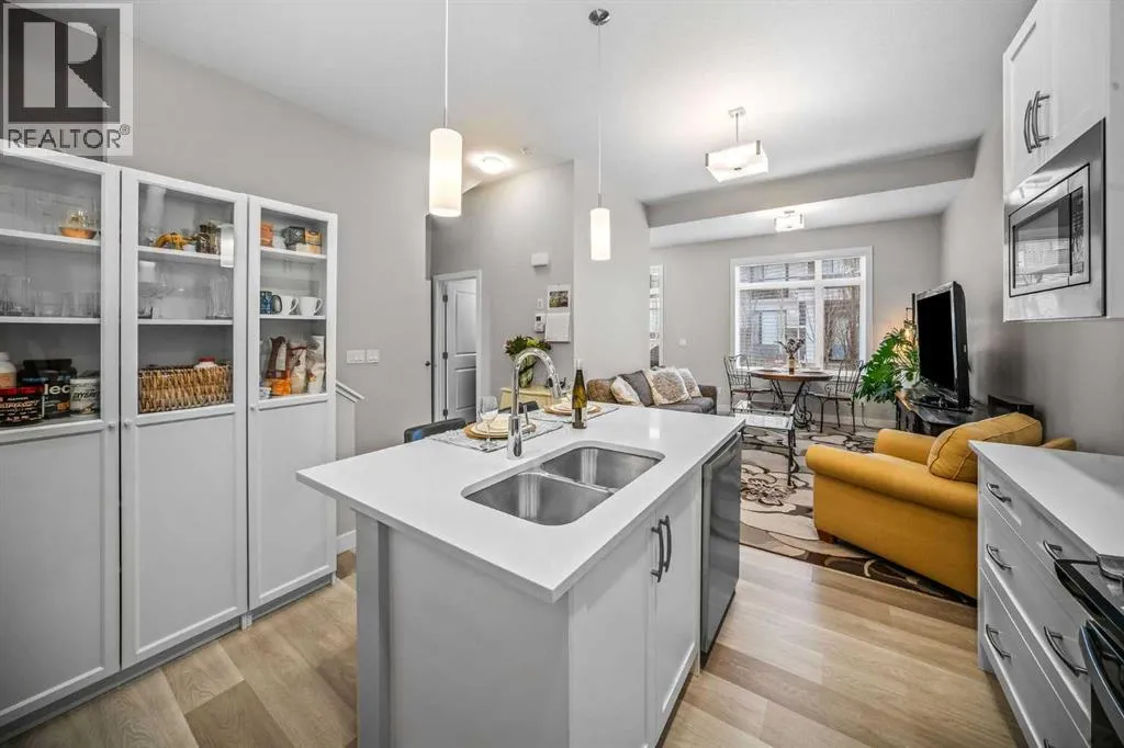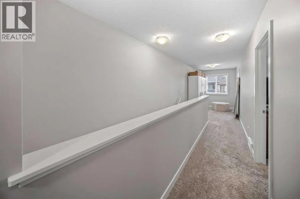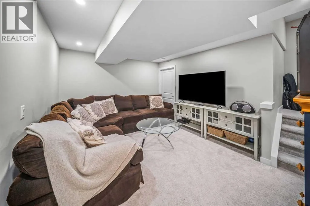 is thoughtfully designed with a fully finished basement and the comfort of A/C. Complete with a finished double attached garage, it offers the space of a detached house with the ease of condo living .Boasting 2,023 sq. ft. of thoughtfully designed living space, this beauty welcomes you with an inviting foyer, and an open-concept main floor that is ideal for both entertaining and everyday living, seamlessly connecting the living and dining areas to create a warm and functional gathering space.The well-appointed kitchen showcases a large quartz island and countertops, soft-close cabinetry with abundant storage, a built-in microwave, Bosch dishwasher, fridge with waterline and an electric stove (there is a gas line for a future upgrade to gas stove)—perfect for both casual meals and hosting guests. A gas line for BBQ is also located just outside the front door. A conveniently located half bath and direct access to the double attached garage along with a utility closet and shoe closet complete the main level. Upstairs, a bright and versatile nook for a home office or sitting area complements the wide hallways. The spacious primary bedroom comfortably accommodates a king-sized bed and features a private covered balcony with mountain views, a walk-in closet, and a 4 piece ensuite with dual quartz vanities. This level also includes a dedicated laundry room, a full 4-piece bathroom, and two additional bedrooms, each offering walk-in closets and large windows that fill the space with natural light.The fully developed lower level is ideal for a growing family or accommodating guests, offering a large recreation area with ample storage, a spacious fourth bedroom with built-in features in the walk-in closet, and a 4-piece bathroom with in-floor heating.Residents of Crestmont enjoy convenient access to an array of amenities, including nearby shopping at the Calgary Farmers’ Market West, Calgary Climbing Centre, COP, Valley Ridge Golf course, outdoor recreation along the Bow River pathways, and proximity to destinations such as Canmore and Banff. The community itself offers a variety of exclusive amenities, including parks, playgrounds, walking and biking paths, a spray park, and Crestmont Hall. (id:64429)