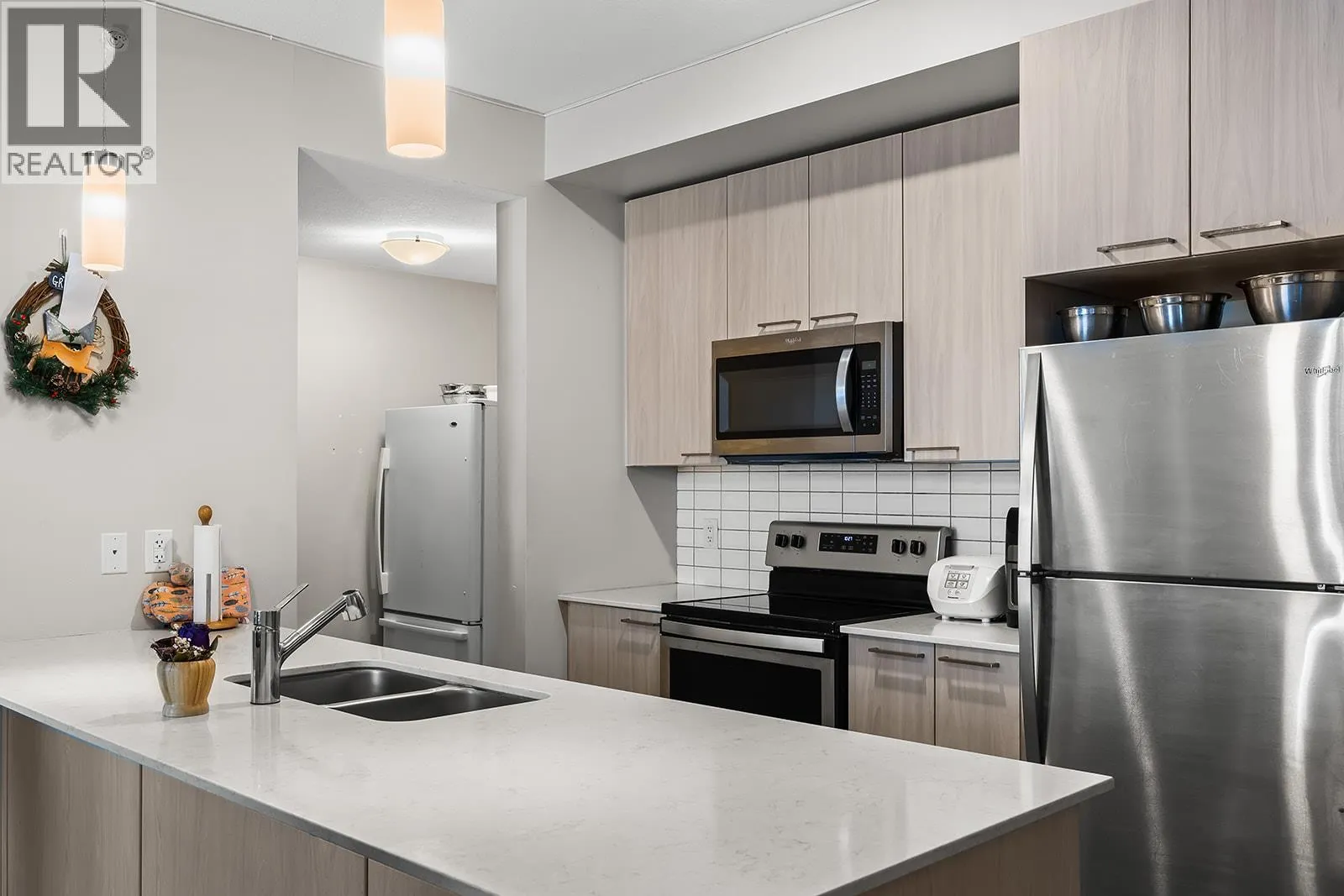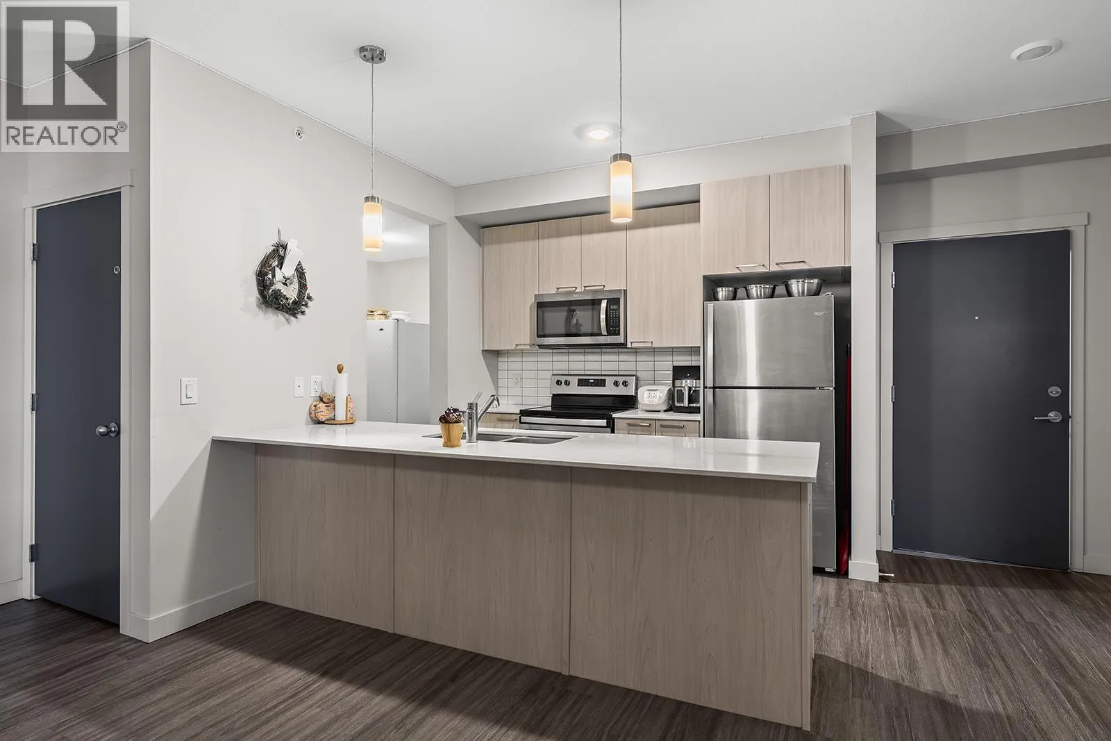 Welcome to 412 2250 Majoros! This Modern Top Floor, Corner Unit has 2 Bedrooms, 2 Bathrooms, a small Den and a good size 10′ x 7′ Balcony. This units layout features a bedroom and bathroom on each side of the unit with the kitchen, dining and living space in the middle. Both bedrooms have large walk-in closets. Are you looking
