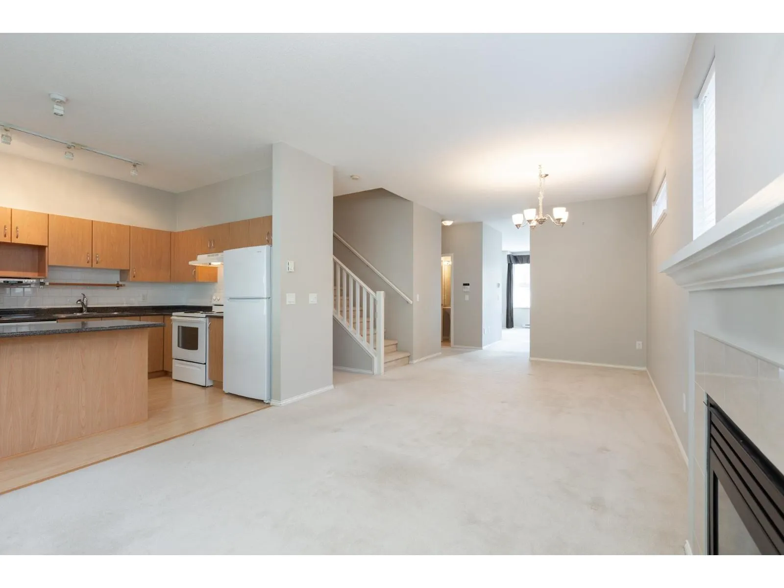 Beautifully maintained 2 level townhome in a sought after Polygon development in Fleetwood City Centre. This spacious home features a primary bedroom on the main floor, complete with a walk in closet and a 5 piece ensuite with a separate shower. The main level offers a formal living room with a bay window, a dining room, and a warm and