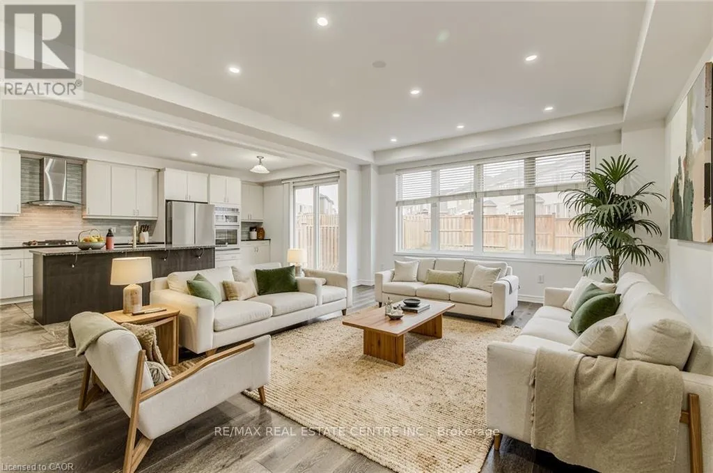 everyday living and entertaining. Elegant wood stairs with iron railings lead to the second level, where you’ll find four generously sized bedrooms and two well-appointed bathrooms with cultured marble counters. The primary bedroom retreat boasts a luxurious ensuite and multiple walk-in closets. Situated on a premium 36 x 108 ft lot, this home features a fully fenced backyard, double car garage, and parking for four vehicles. Enjoy a rare setting fronting onto protected green space with a flowing river stream, scenic views, nearby pond, nature trails, and parks, all while being ideally located in a prime Cambridge neighborhood close to major amenities and highways. A perfect blend of luxury, nature, and convenience, book your showing today! (id:62650)