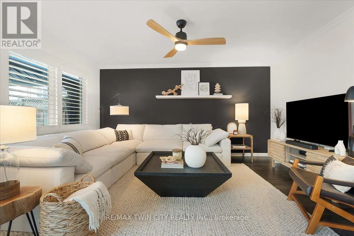 Welcome to this beautifully maintained 3-bedroom, 2.5-bath end-unit townhouse located in the heart of Cambridge. Offering exceptional space, comfort, and style, this move-in-ready home showcases numerous upgrades and refined finishes throughout. The bright open-concept main floor is ideal for both everyday living and entertaining, featuring upgraded laminate flooring throughout all levels, spacious living and dining areas enhanced with elegant crown