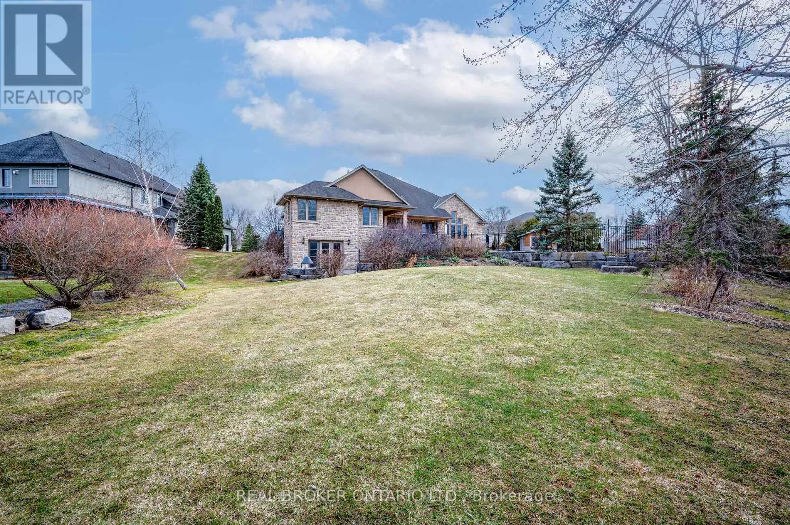 Set within the gated community of Irish Creek Estates on Puslinch Lake, this is one of just 20 custom-built residences, in a setting where homes are rarely offered and standards are already established.Just under 7,000 square feet of finished living space, wrapped in a full stone exterior that gives the home a presence the moment you arrive. Vaulted ceilings and
