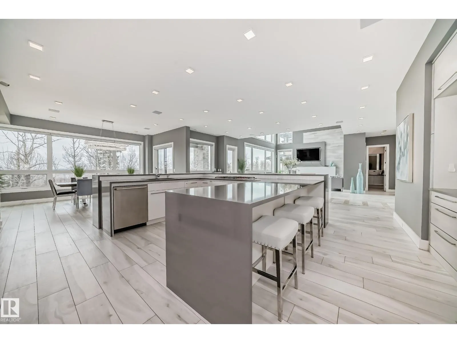 Exquisite European architecturally designed, custom-built by an Award Winner Vicky Homes. This elegant mansion offers 6478 sqft total , 5 bedrooms, 6 baths, 4 balconies, 3 offices, 4 car garage boasting prestigious on huge lot 12,134 sqft in Cameron Heights overlooking the Saskatchewan River. The extravagant great room has tiled glass door fireplace, 3D Ceiling designed open to the below