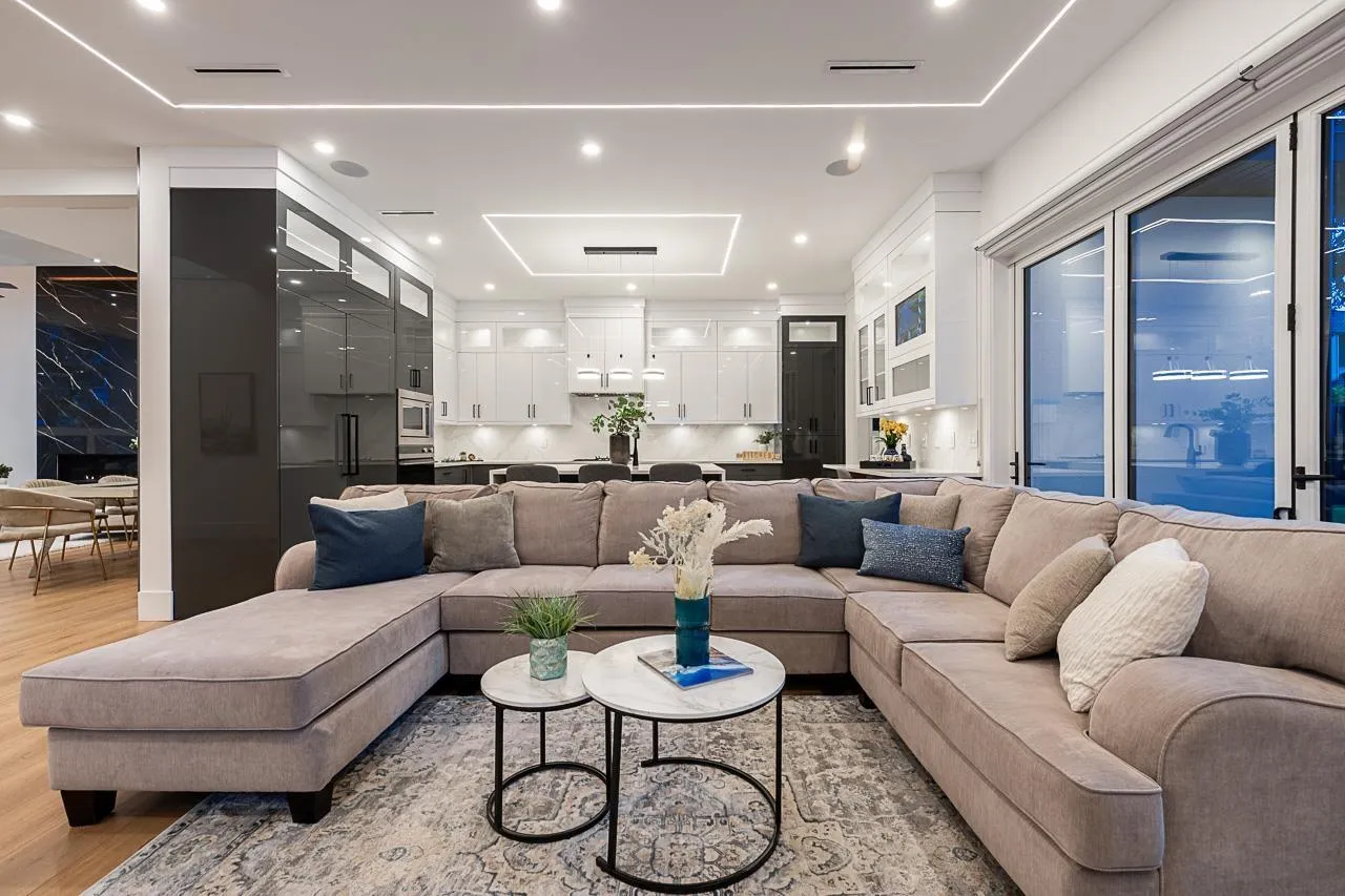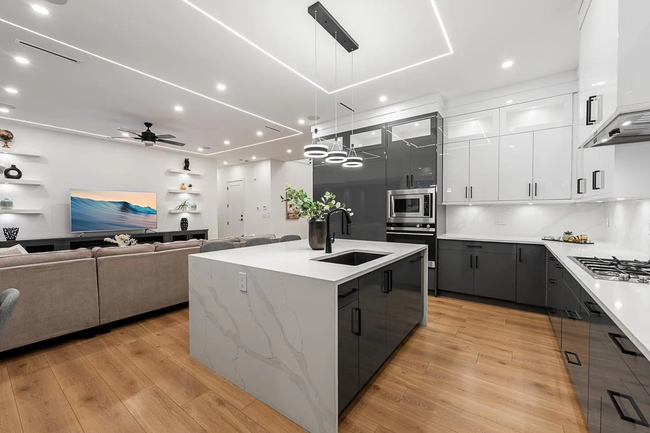 Exquisite Custom-Built Luxury Home- Experience unparalleled elegance in this custom-built home, boasting over 3,700 sq ft of luxurious living on a generous 7,200 sq ft lot. The impressive entryway captivates with 20-foot soaring ceilings, oversized windows, and a bespoke wood front door hinting at exceptional craftsmanship. Discover imported wide-plank Spanish flooring, sleek glass railings, and modern ceiling strip lighting. The