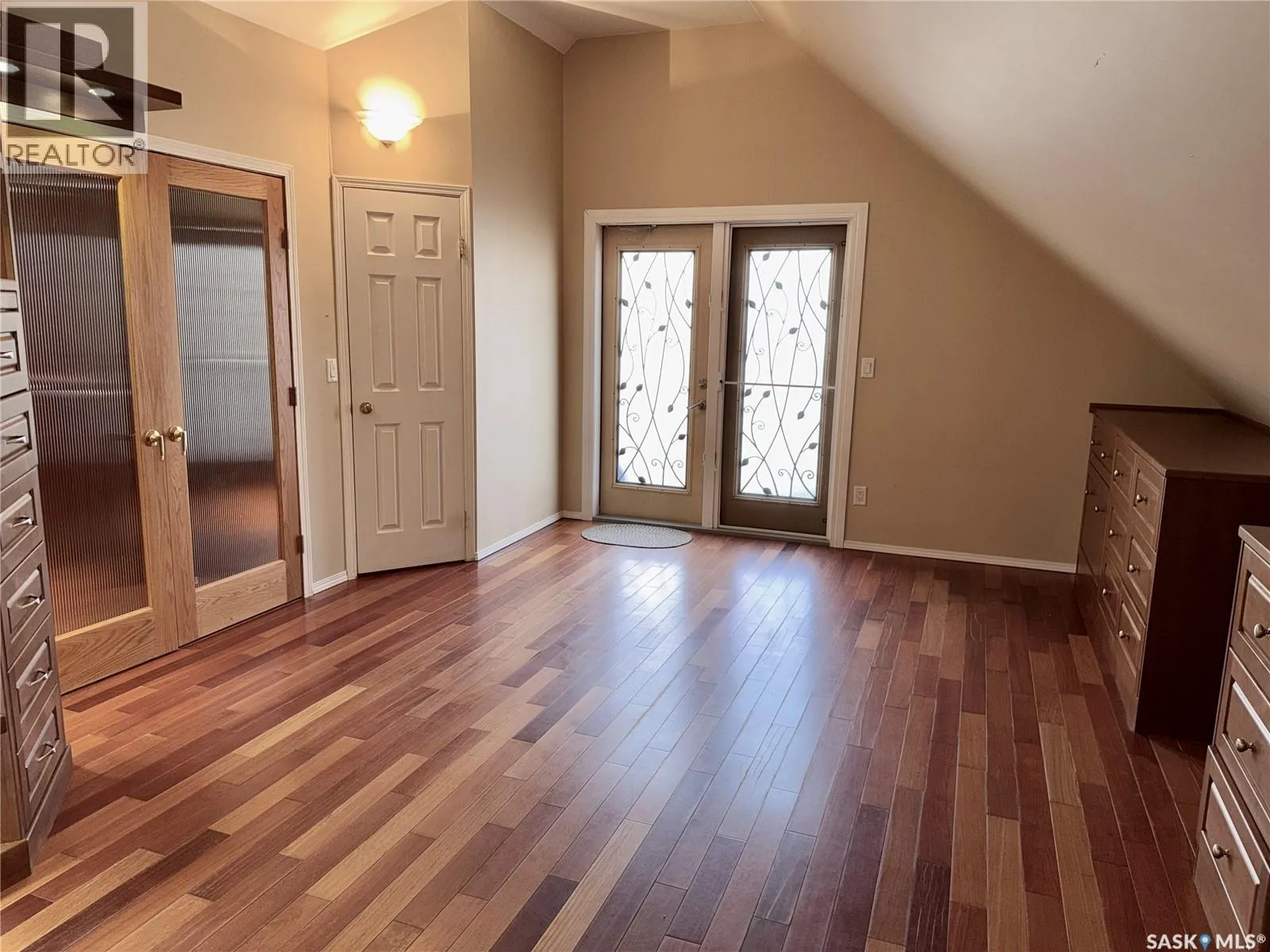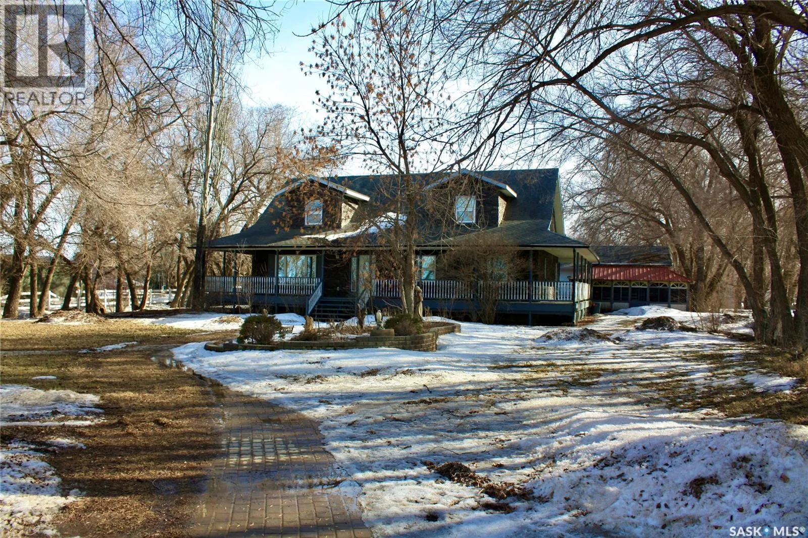 Don’t miss this exceptional acreage offering the perfect balance of privacy and convenience, located just a short drive from Saskatoon with minimal gravel and paved driveway right to your door. This impressive one-and-a-half storey home offers over 2,700 sq. ft. of thoughtfully designed living space, complemented by a full wraparound covered deck—ideal for relaxing while enjoying the serene, park-like setting