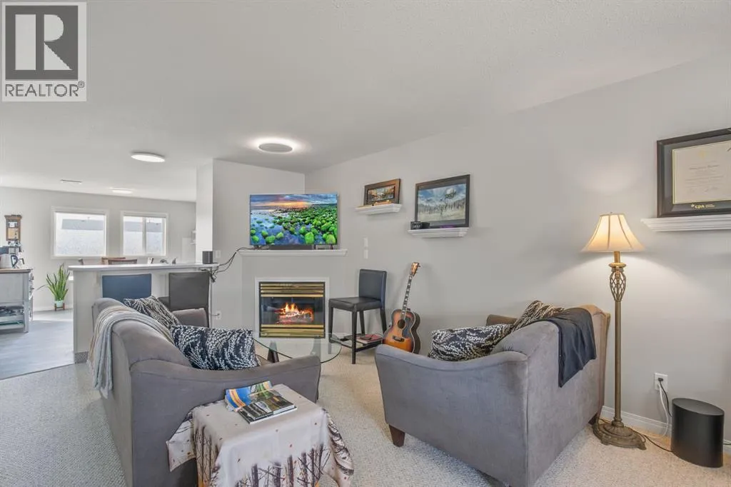 Welcome to this meticulously maintained, like-new two-storey townhome located in a quiet southeast complex. This desirable layout features an open-concept main floor highlighted by a cozy corner gas fireplace, a convenient half bath, and new LED lighting throughout, creating a bright and inviting space.Upstairs offers two spacious bedrooms plus a versatile flex space, along with a large main bathroom. The