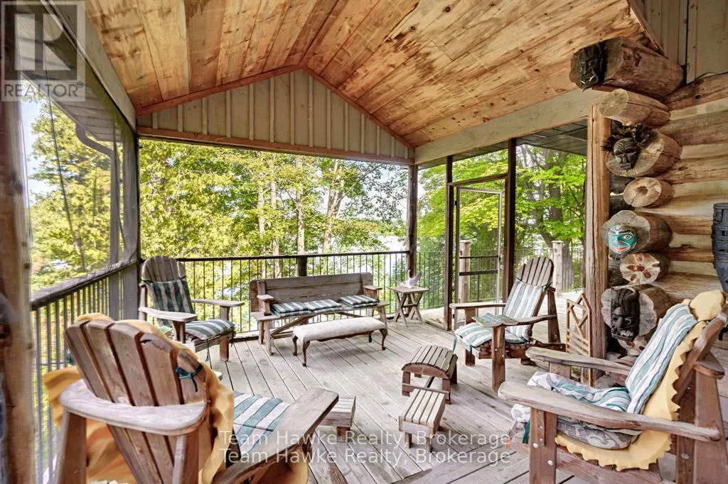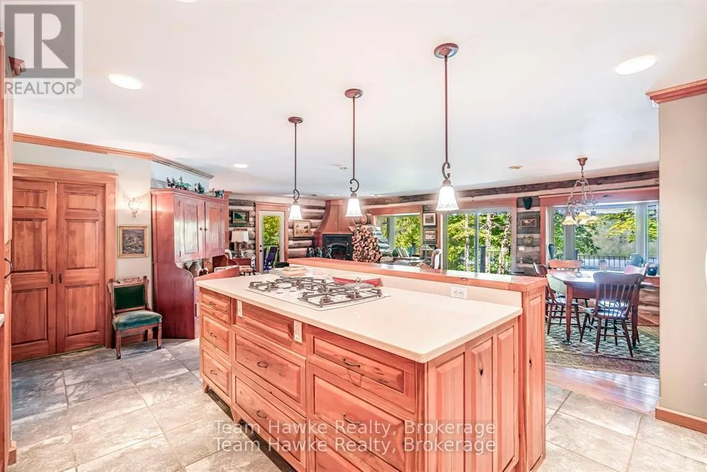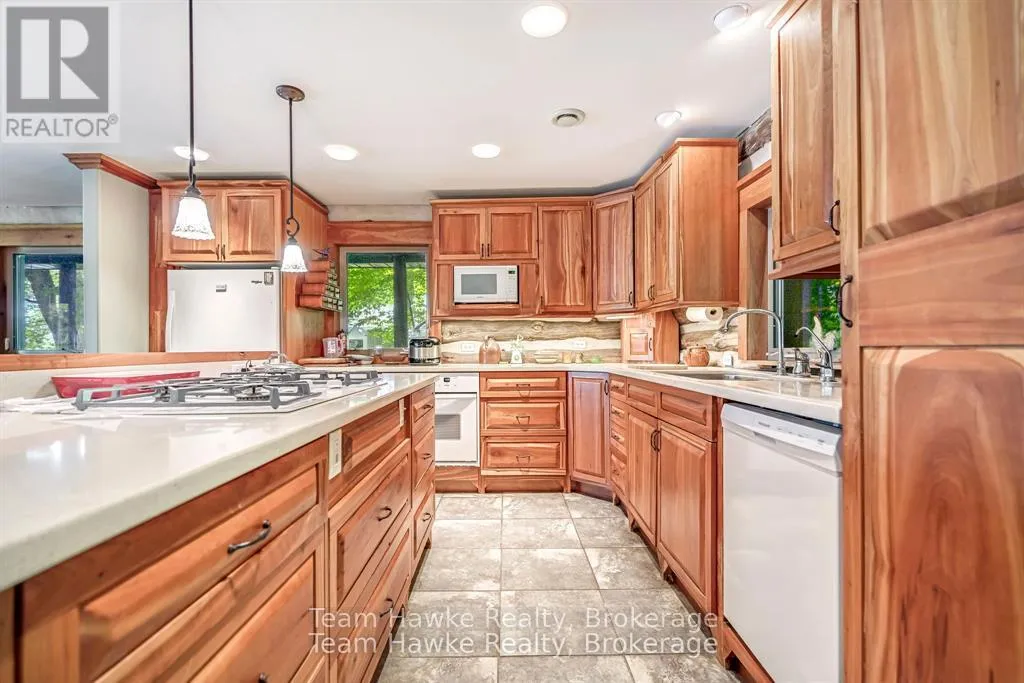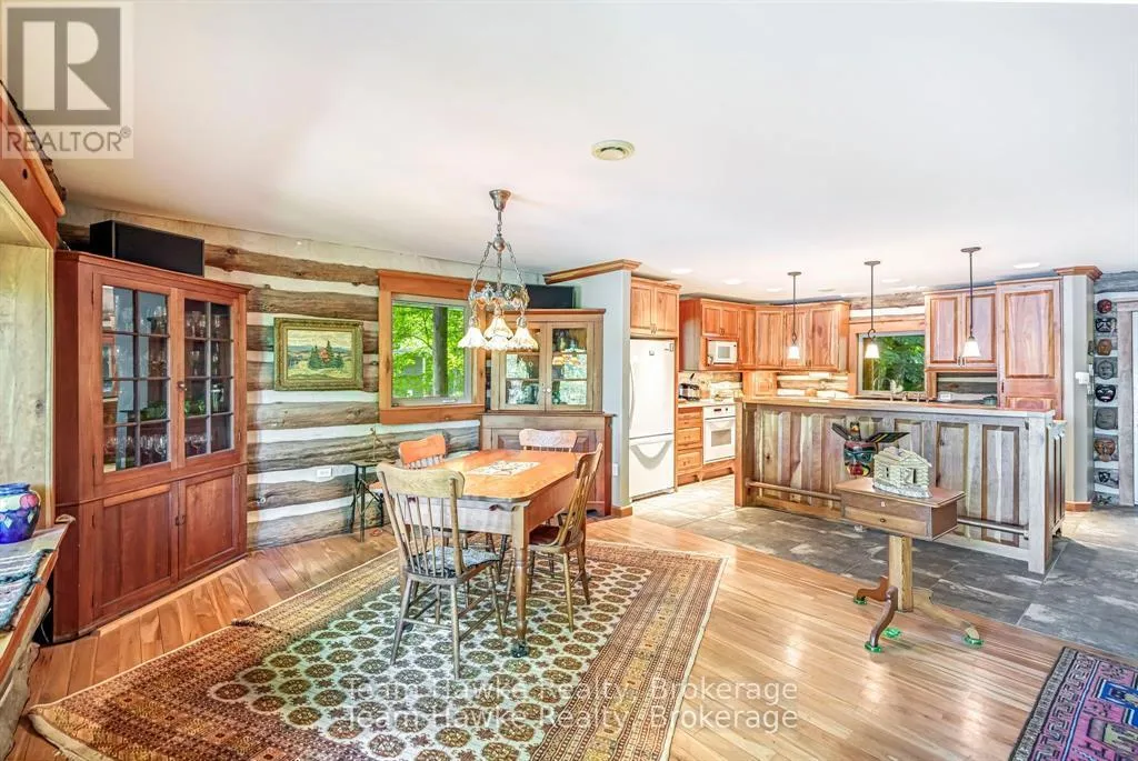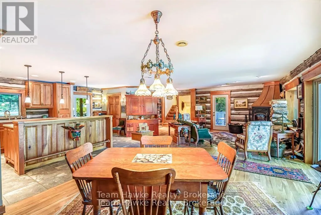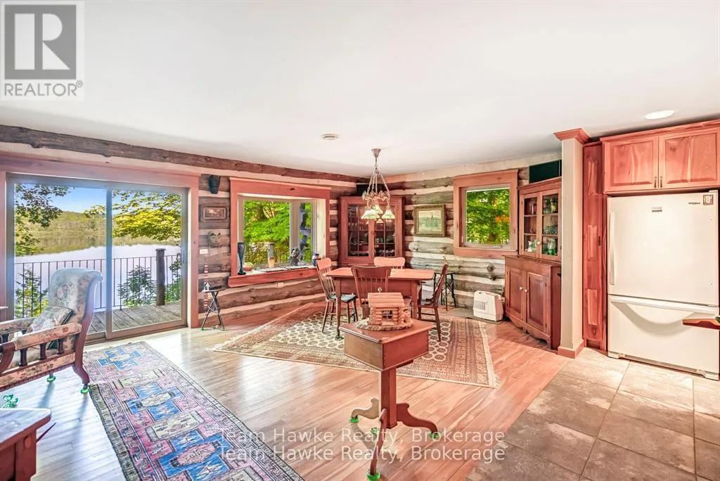One of only eleven waterfront properties on Sumac Lane, this stunning four-season log home, built in 2005, offers just under 74 feet of frontage on Little Lake. Tucked away on a privately maintained road, the home screams rustic charm, creating an ideal year-round residence or weekend retreat. Inside, the heart of the home is the large chefs kitchen, complete with
