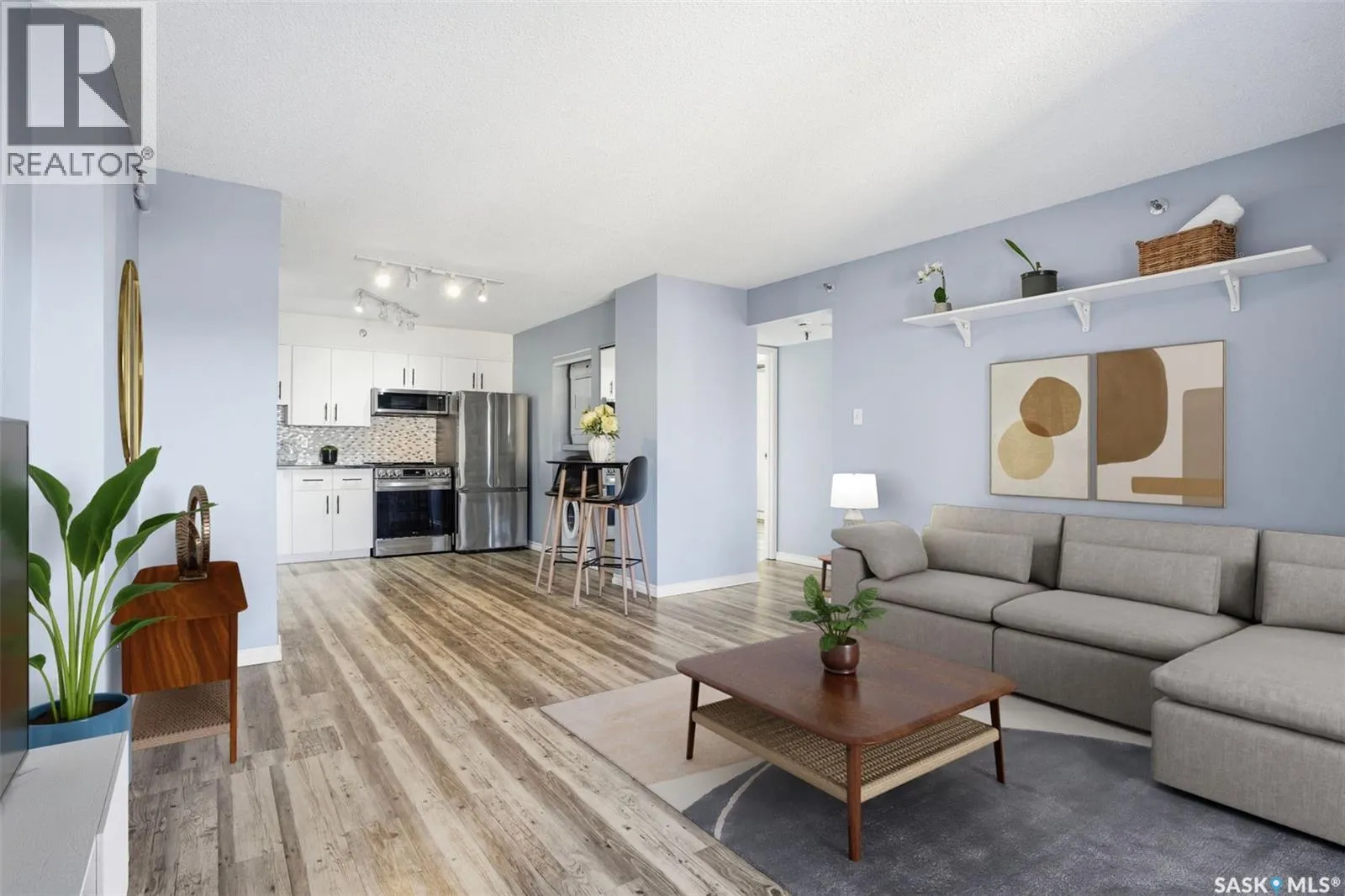 Welcome to #503 – 405 5th Avenue North in City Park, Saskatoon! This beautifully updated 5th-floor corner unit offers exceptional value in a prime downtown location. This bright and inviting 2-bedroom, 1-bathroom condo is perfect for those seeking convenience, comfort, and affordability. Step inside to discover a fresh, modern interior featuring attractive vinyl flooring, fresh paint and an open-concept layout