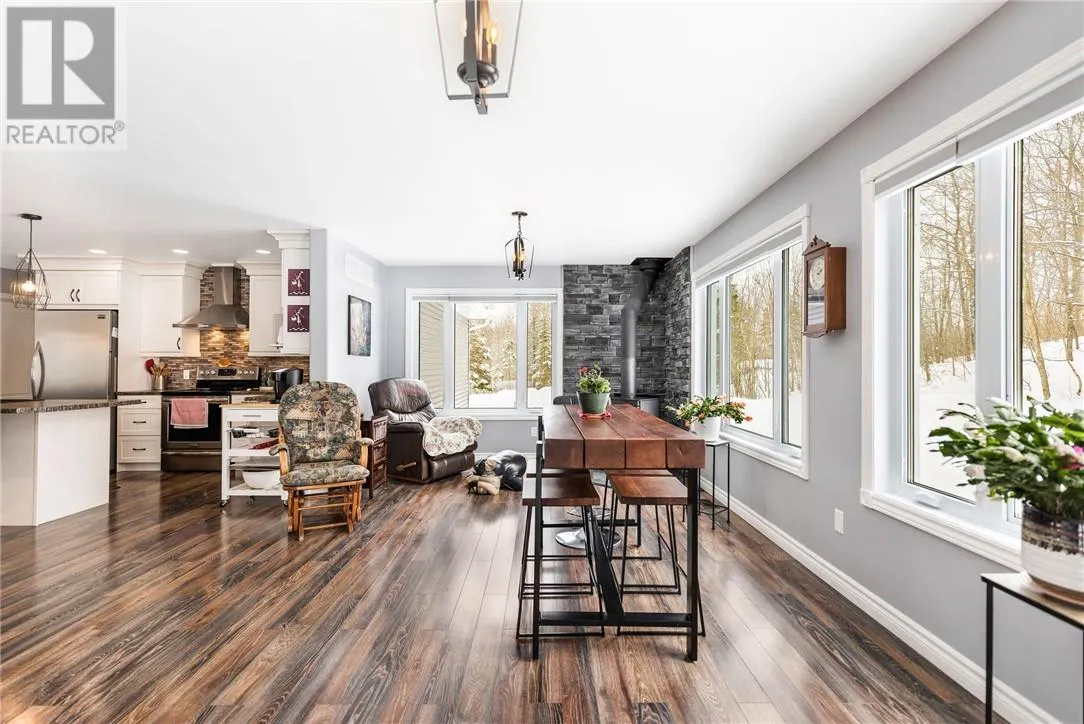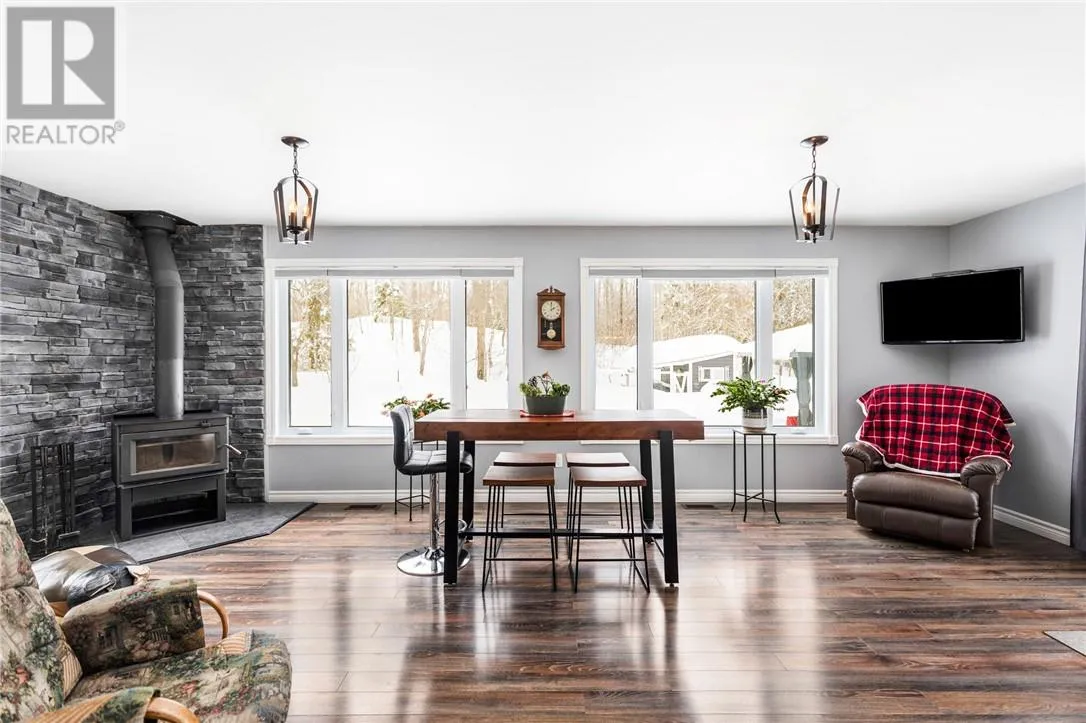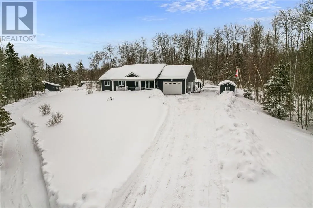 Welcome to Nepewassi Road in Estaire! This 2016-built bungalow is set on a private 25-acre property, offering the perfect blend of comfort and outdoor lifestyle. The bright, open-concept main floor features two bedrooms, a full bathroom with laundry, an additional 2-piece washroom, and convenient access to the attached garage. Enjoy the sunroom overlooking peaceful surroundings, complete with a cozy wood-burning