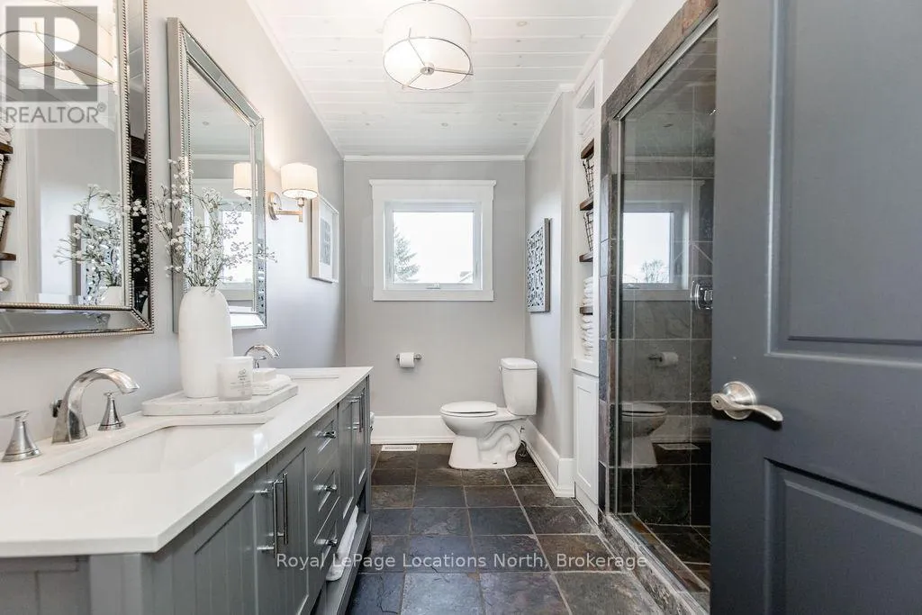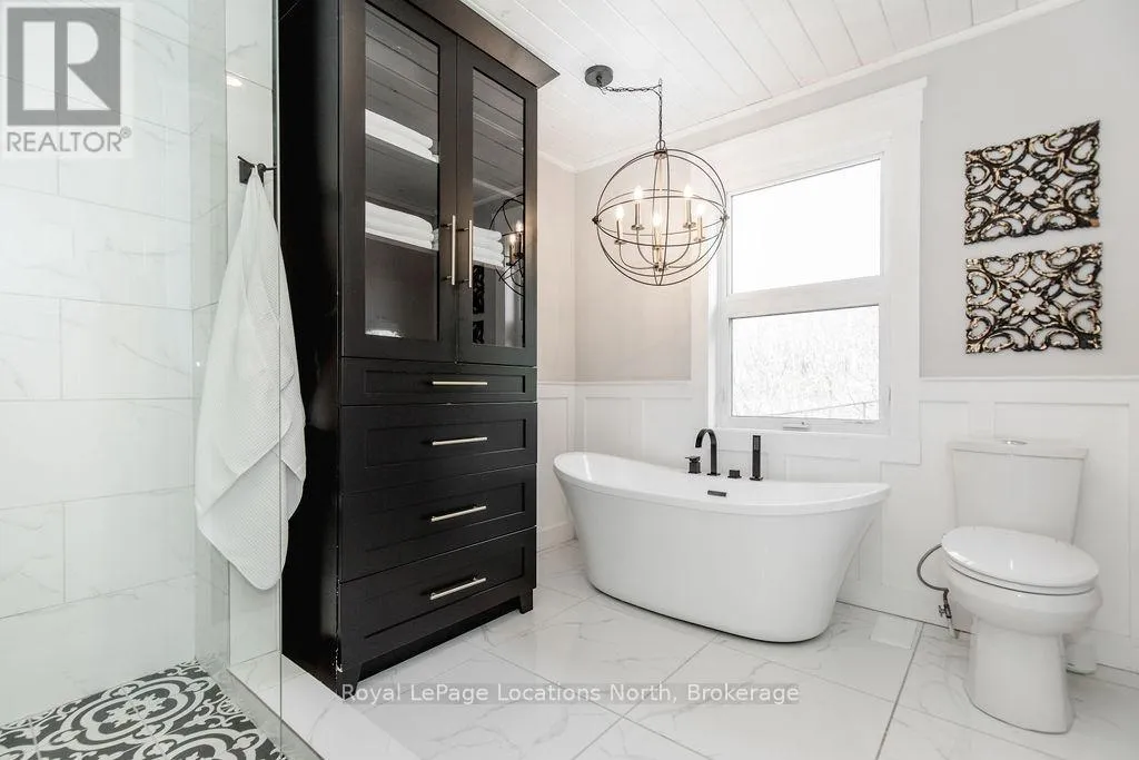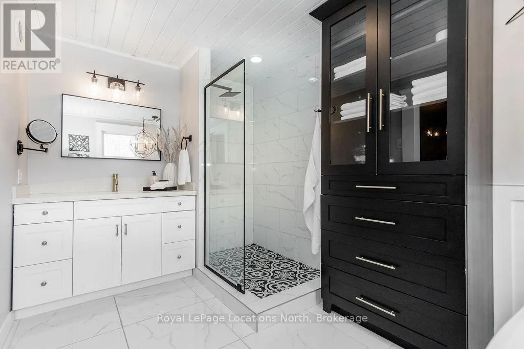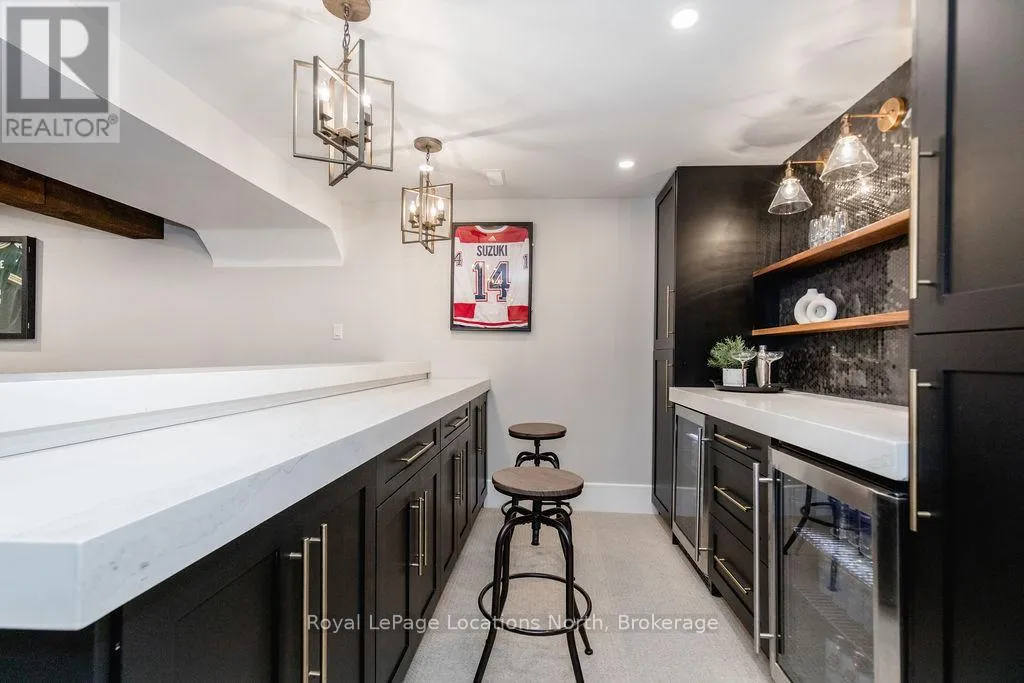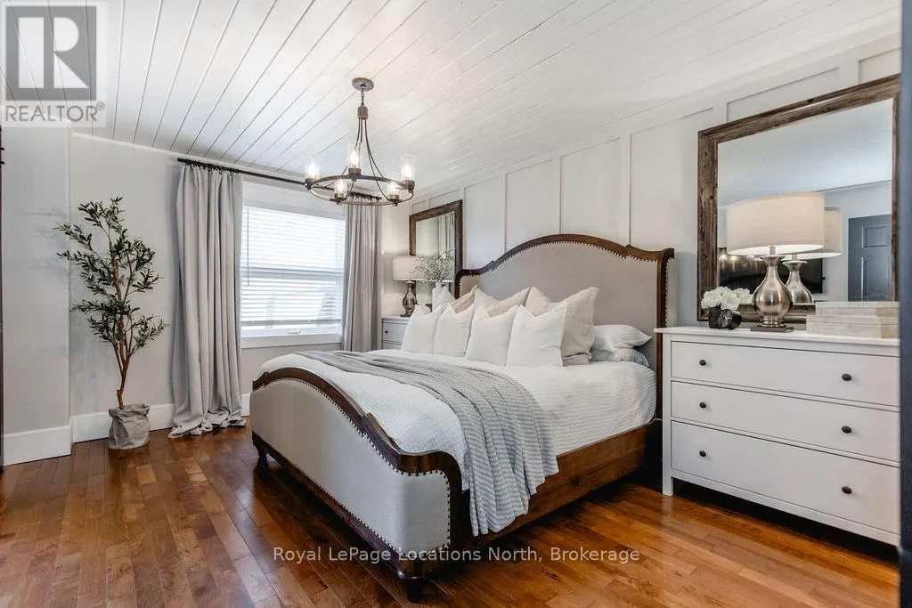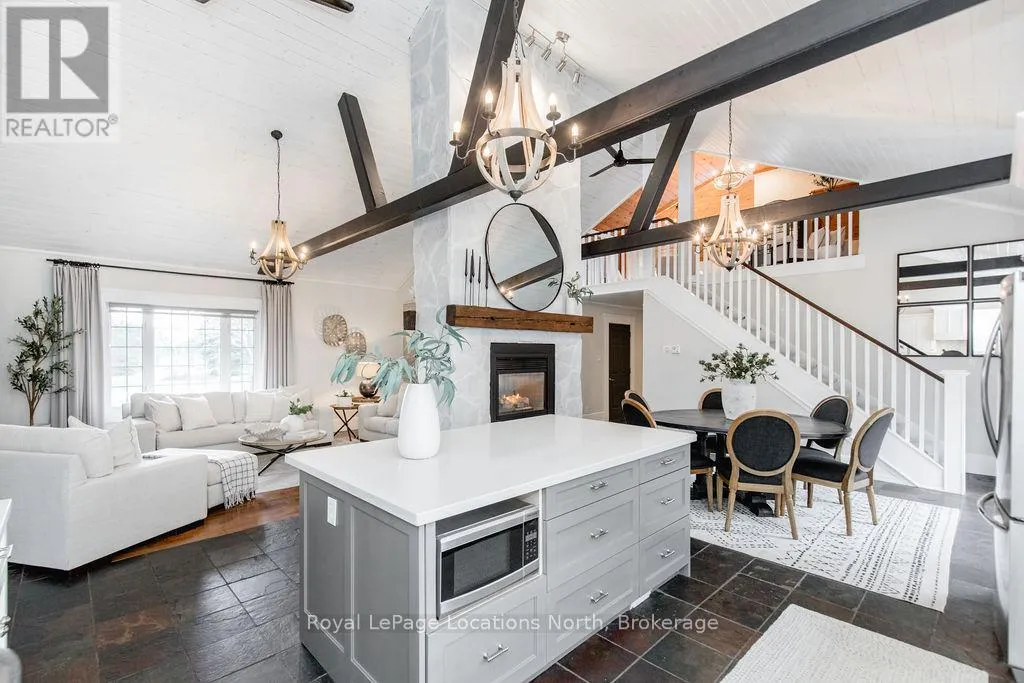 Set on a large, mature estate lot backing onto trees in the popular Wasaga Sands estate area, this custom-built modern rustic home offers privacy and warmth. Summer evenings invite you into the backyard where the timber-frame gazebo glows under custom lighting, the fire pit crackles and the treed backdrop creates a peaceful, resort-like setting. In winter, the snow-covered trees provide