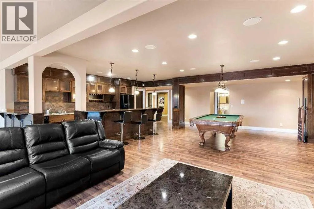 Set on 9.17 acres in Bearspaw, 10 Minutes to the NW Calgary Light Rail Transit, this custom-built estate offers unobstructed west-facing Rocky Mountain views, and minutes to major shopping in Cochrane and Calgary. The 9.17 Acres can be subdivided into two parcels. Boasting over 10,000 sq.ft. of developed living space, the home features 7 bedrooms (4 above grade,