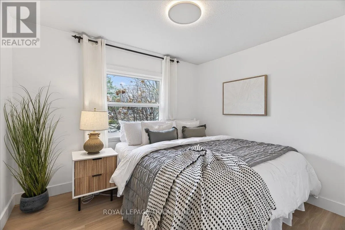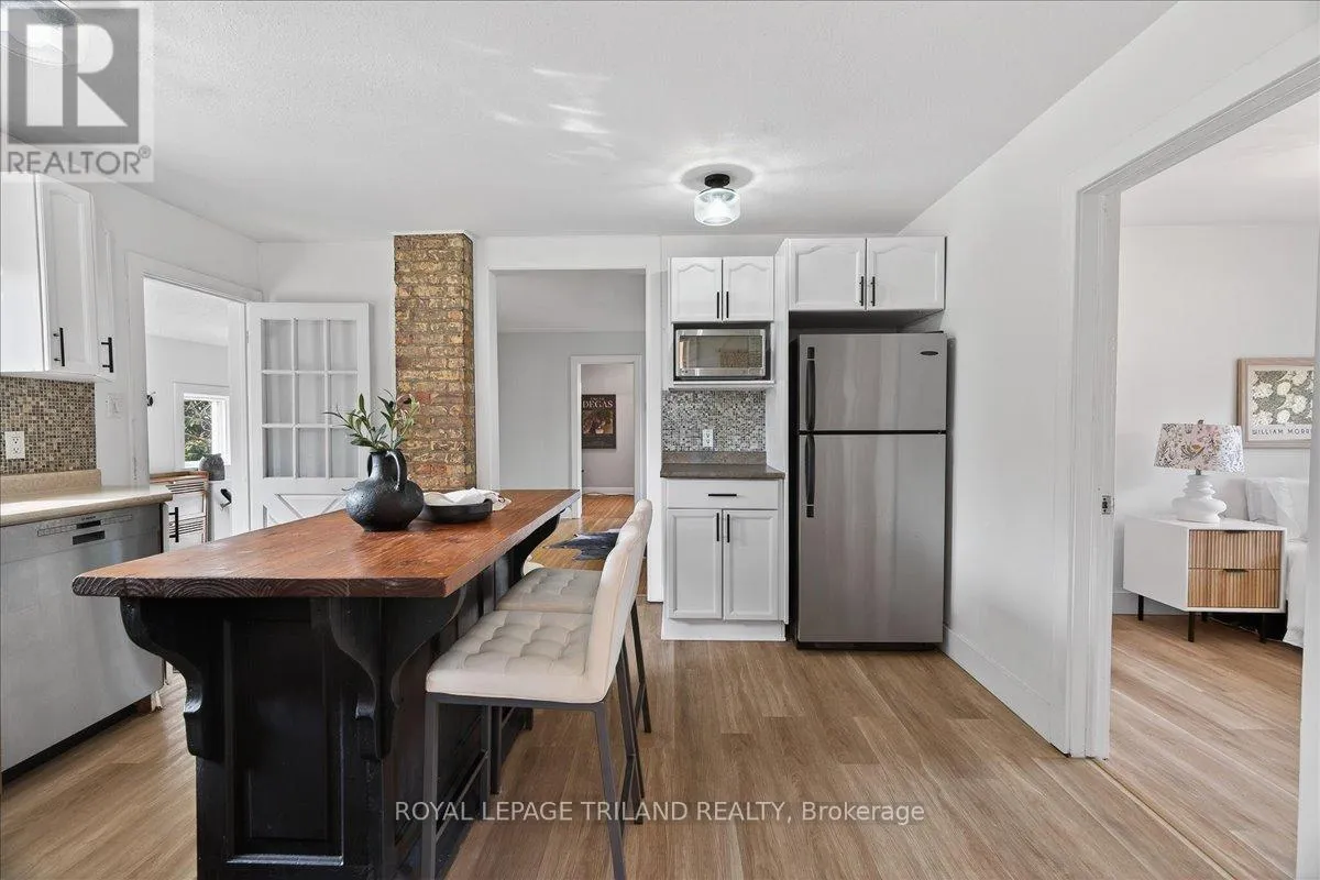 Desirable Byron bungalow on a premium oversized lot! Set on a rare 187-ft deep property, this home offers a spacious backyard oasis perfect for entertaining. This fully fenced scenic backyard features a picturesque gravel firepit and mature trees. The main floor features 3 bedrooms, a functional kitchen with a moveable island, a cozy living room with exposed brick, barn door