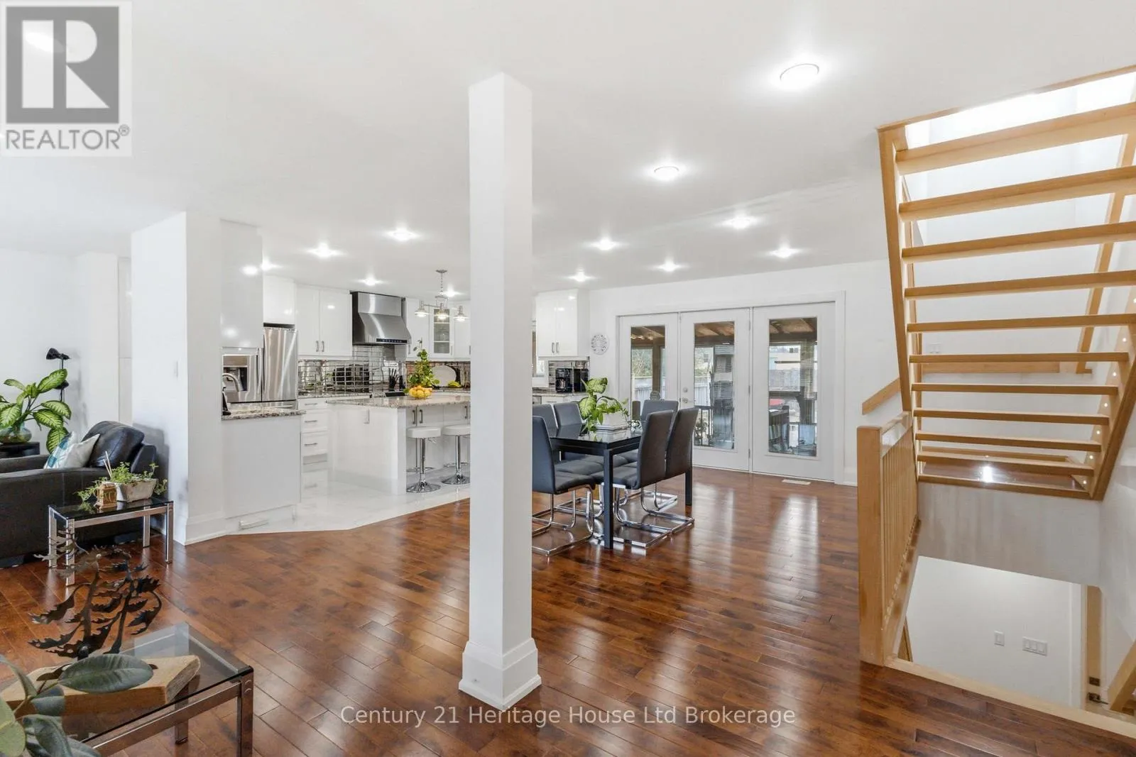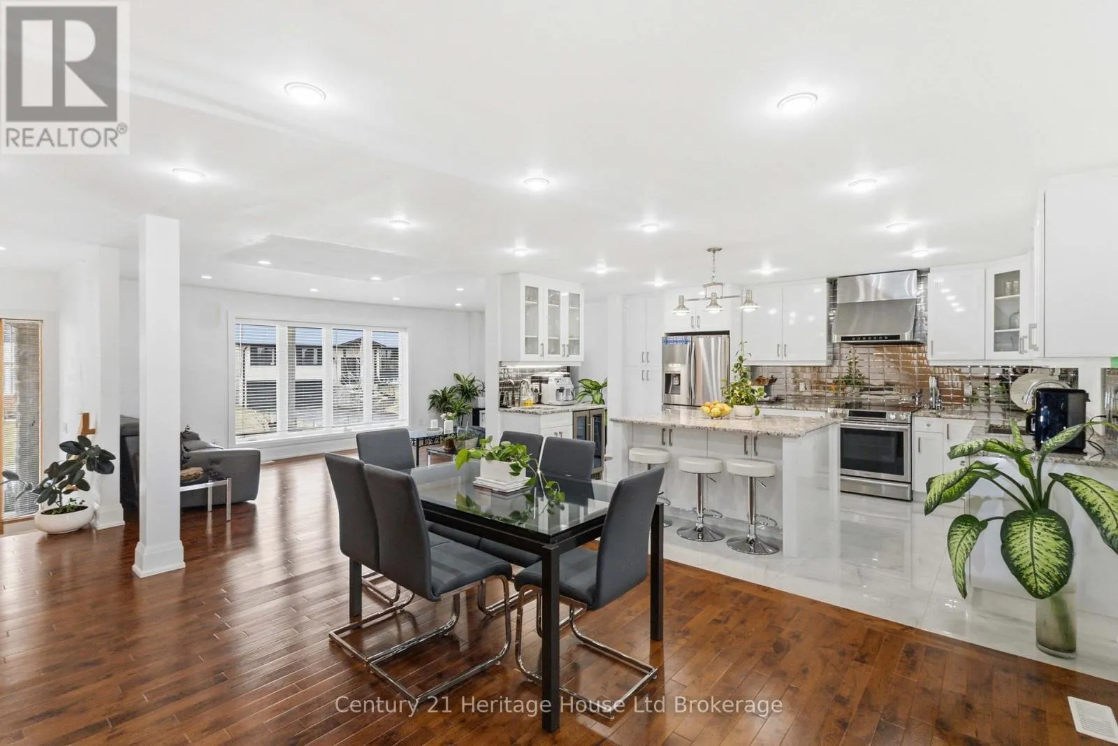 Welcome to 61 Applewood Crescent! This versatile home offers a functional layout ideal for families or multi-generational living.The main floor features an open-concept living, dining, and kitchen space with hardwood and porcelain flooring throughout. The kitchen is equipped with granite countertops, a large island, and a central vacuum sweep inlet. Two well-sized bedrooms are located on this level, including one