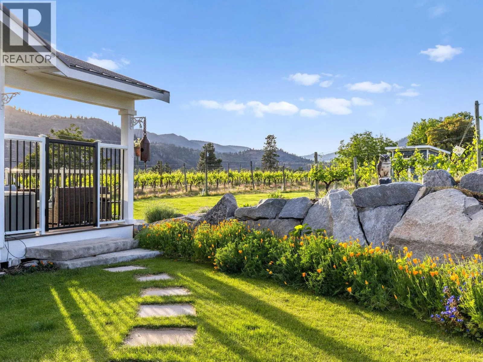 STUNNING HOME, VINEYARD ELEGANCE AND TURNKEY INCOME! Experience effortless vineyard ownership and immediate income from day one! This 3.22-acre Oliver estate features 2.2 acres of Roussanne grapes under contract with the acclaimed Le Vieux Pin Winery—offering hands-free cultivation, guaranteed revenue, and a passive return as you savour the South Okanagan lifestyle. This spectacular home boasts over 3400+ sqft of recently