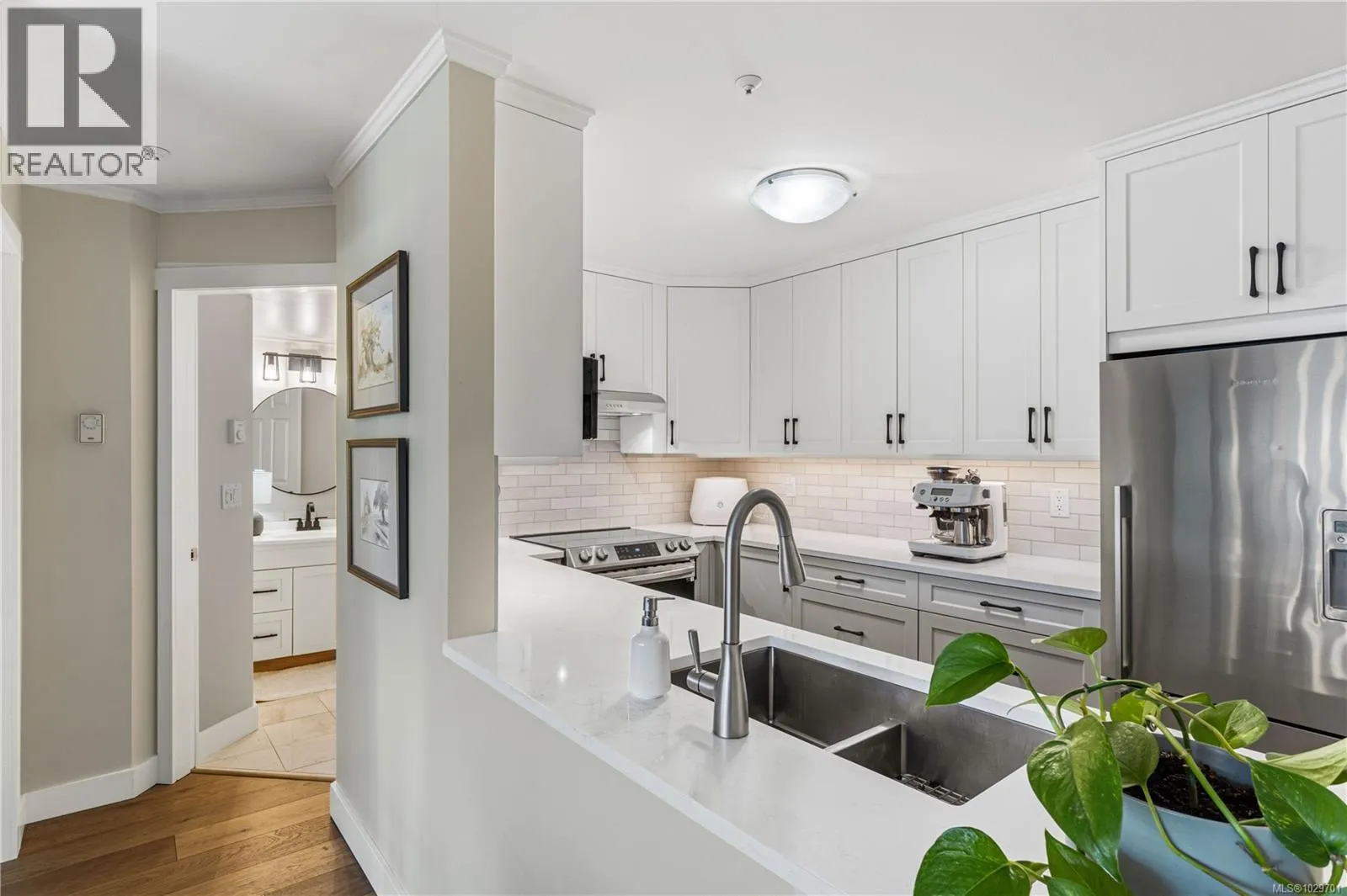 Bright, modern, and move-in ready ground-floor condo in desirable Rocky Point! This beautiful 2 bed, 2 bath home features bedrooms on opposite sides for privacy. Updated kitchen with newer Fisher & Paykel fridge and new stove/oven, plus new flooring, light fixtures, and gas fireplace surround. Large windows bring in abundant natural light throughout the home. Enjoy a private patio with