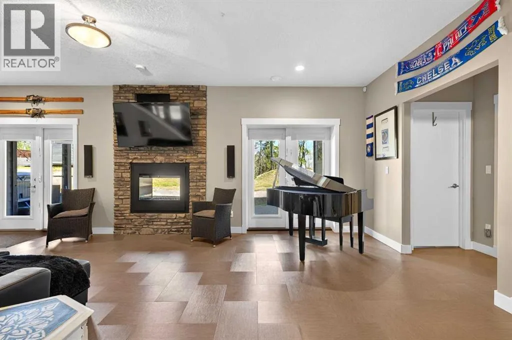 rest. Built with ICF block form which keeps it cool in the summer, warm in the winter & matched with the triple pane windows, your utilities affordable. You are welcomed by a beautiful exposed driveway, matched to the retaining walls in the backyard. There is a stamped concrete porch attached, with a custom 8ft stunning front door. Walking in, you have a beautiful landscape of your living room, and eat-in kitchen with a view to your covered low maintenance deck and treed yard. The kitchen is beautiful with gas range, extra cabinetry, additional plugs in the island and a stunning built in quartz countertop as a dining table and the large pantry that provides so much extra storage. The primary suite is one of the most functional around. You have a door to the covered deck to enjoy your morning coffee, the ensuite has 2 separate areas to get ready for your day, and also a grand tiled shower with glass doors. The ensuite walks through to the walk-in closet of your dreams-WOW.. and follows through directly into your laundry room and again through to your mudroom! The flow is natural and so worth it! This home provides a loft or 1/2 storey upstairs that is the perfect bedroom for a teenage/ or rec space (663 total sq ft up there). It is sound proofed and has a walk-in closet, and 3-pc bath. The basement is fully finished with infloor heat and provides an incredible space for entertaining and guests! You are greeted by a grand wet bar, music room that is sound proofed that can also double as a huge bedroom, living space and the eye catching double sided fireplace that goes inside and outside. The hot tub on the lower level also stays and has wiring complete for a TV to watch the game while you relax! One more bedroom , & large 3pc bathroom completes the basement. There is built-in surround sound and 4 different sonos speakers in this home which means you can play 4 different genres of music (exterior, garage, primary bedroom and upstairs 3-pc bathroom). The triple car garage is 31X32 and offers a garage door out to the back yard, such a neat feature! If that wasn’t enough, please make sure to check out the full feature sheet with your realtor with all the custom extras, including hot/cold taps,”hide a hose 50ft Vaccuum”, hot water on demand, AC, triple pane windows.. the list goes on! (id:62650)