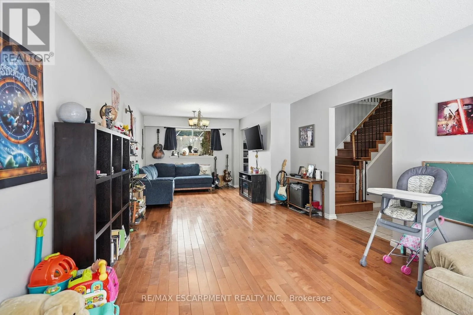 Spacious 4-bedroom, 3-bathroom home located in a quiet, family-friendly neighbourhood, offering over 2,000 sq ft of comfortable living space. A welcoming ceramic-tiled foyer leads into a bright open-concept living and dining area featuring hardwood flooring and a beautiful bay window. The eat-in kitchen offers plenty of space for everyday family living, while the cozy family room showcases hardwood floors, a
