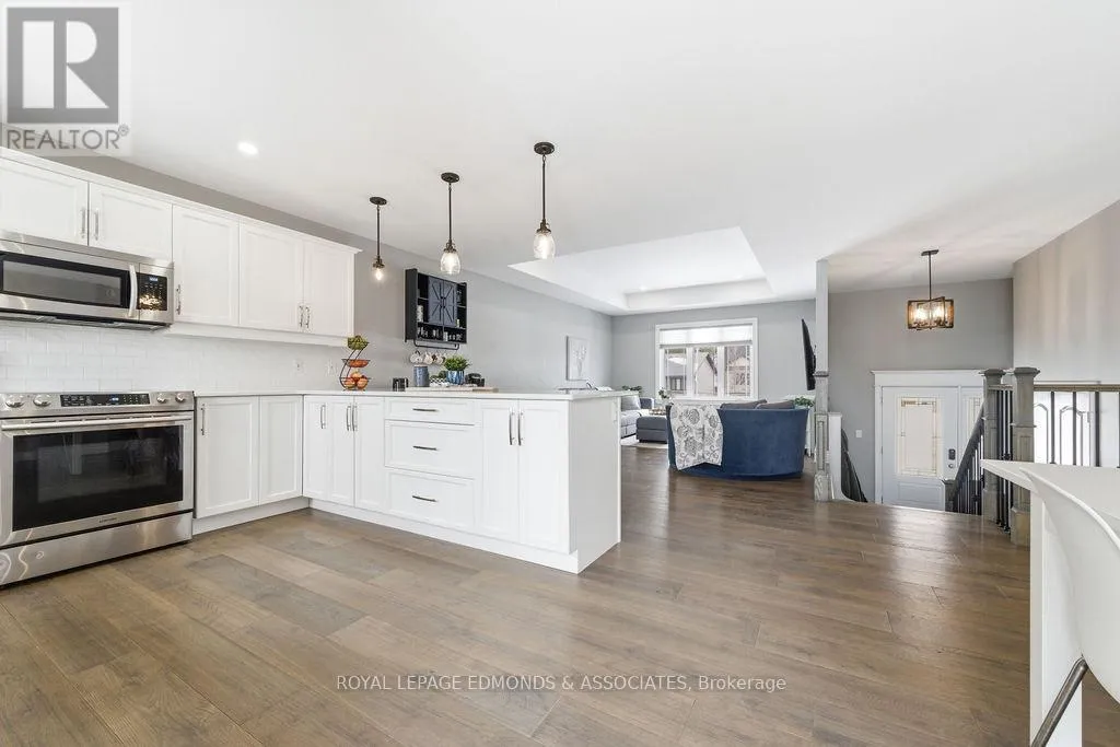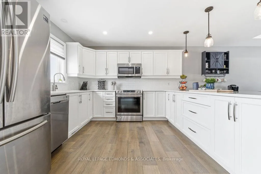 This exceptional home is situated in the highly desirable Laurentian Highlands subdivision. The main level features a bright, open-concept living and dining space, complete with ample preparation area, elegant quartz countertops, under-cabinet lighting, and a stylish backsplash. Patio doors off the dining area lead to a spacious two-tier deck, perfect for entertaining, overlooking a fully fenced backyard. The primary bedroom