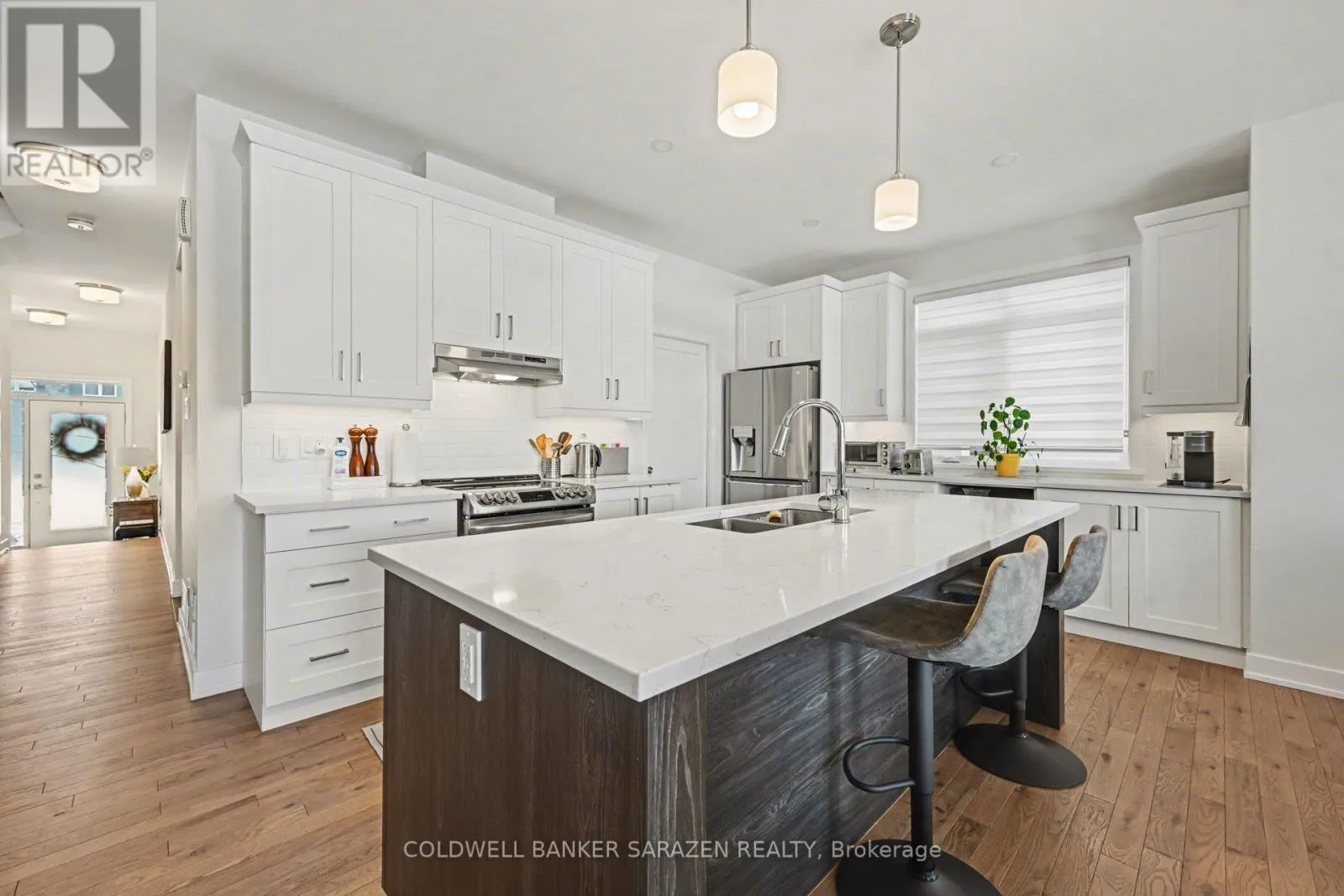 Beautiful 3-bedroom, 4-bathroom home located in a welcoming family neighbourhood. This property features an open-concept main floor with spacious living and dining areas, perfect for entertaining or family gatherings.The kitchen offers a large centre island with seating, plenty of counter space and an amazing walk in pantry. The living room has a cozy gas fireplace, large windows and a patio