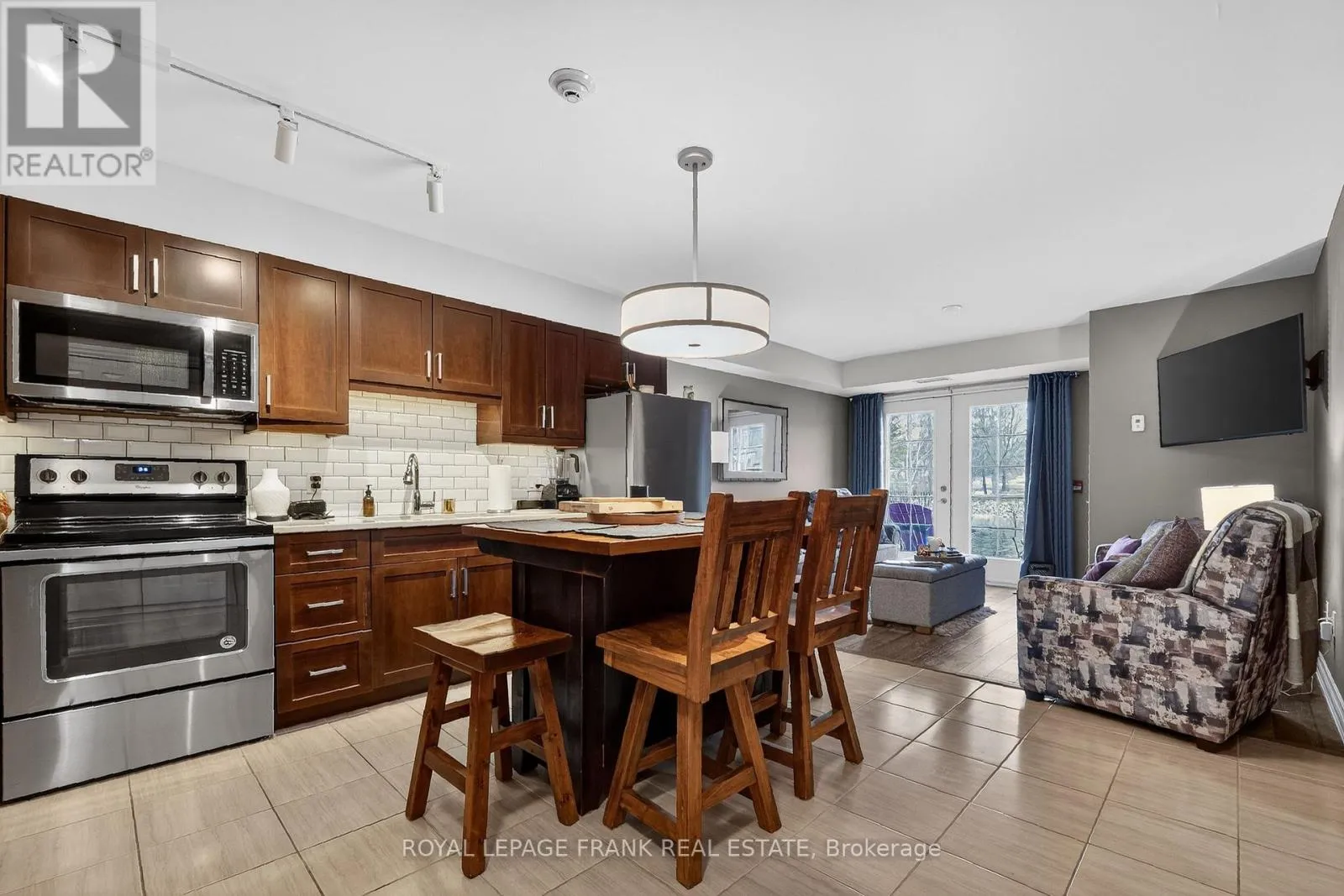 Modern & Stylish Waterfront Condo in the Heart of Lindsay! This ground floor 1 bedroom suite flaunts a beautiful open concept floorplan with a walkout to a peaceful riverside patio. The kitchen features stainless steel appliances, quartz countertops, loads of cupboard space & center island w/seating for 4. Spacious primary bedroom & bathroom. In-suite laundry. Pyjama Factory Condominiums offers