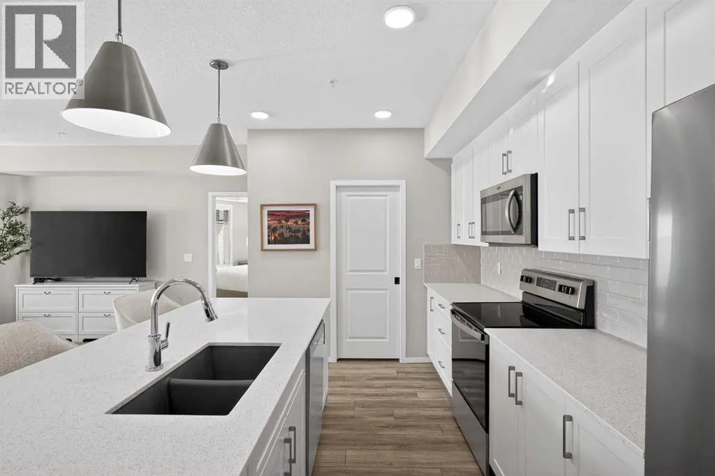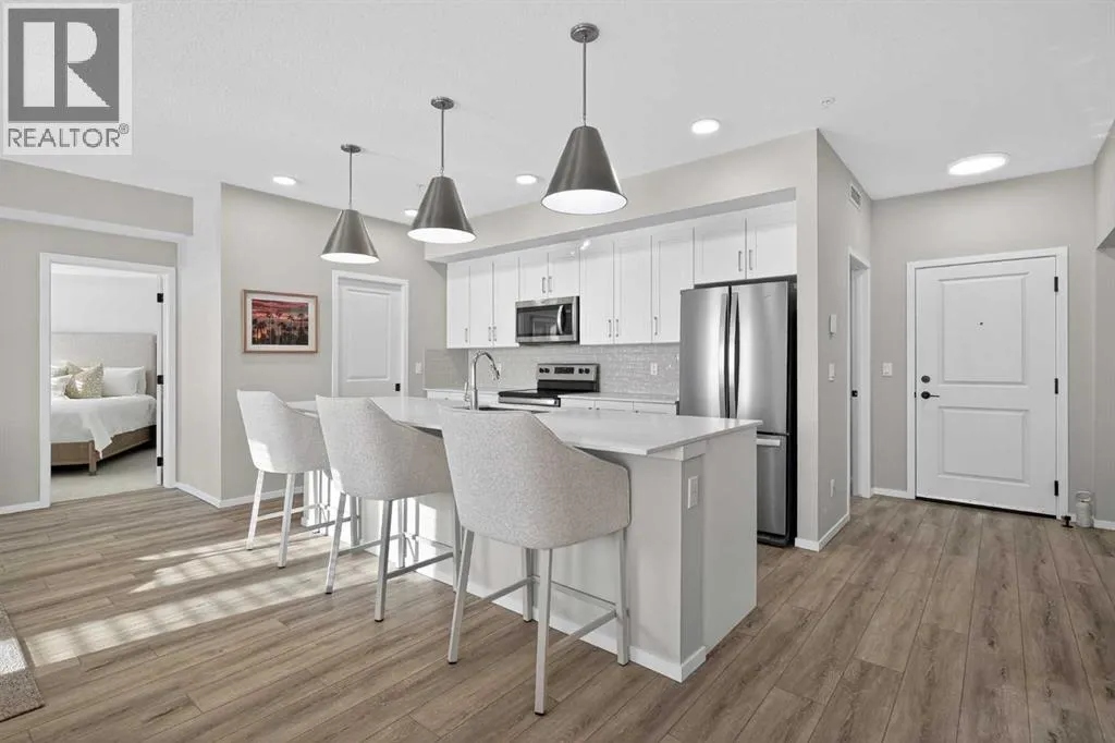 Enjoy the best of lake living in this beautiful 1,255 sq. ft. condo in the award-winning community of Mahogany. This home is kept in perfect condition and features 2 BEDROOMS, 2 BATHROOMS, AND A PRIVATE DEN. It offers the spacious feel of a full-sized house with all the ease of a modern condo. From the moment you step inside, you