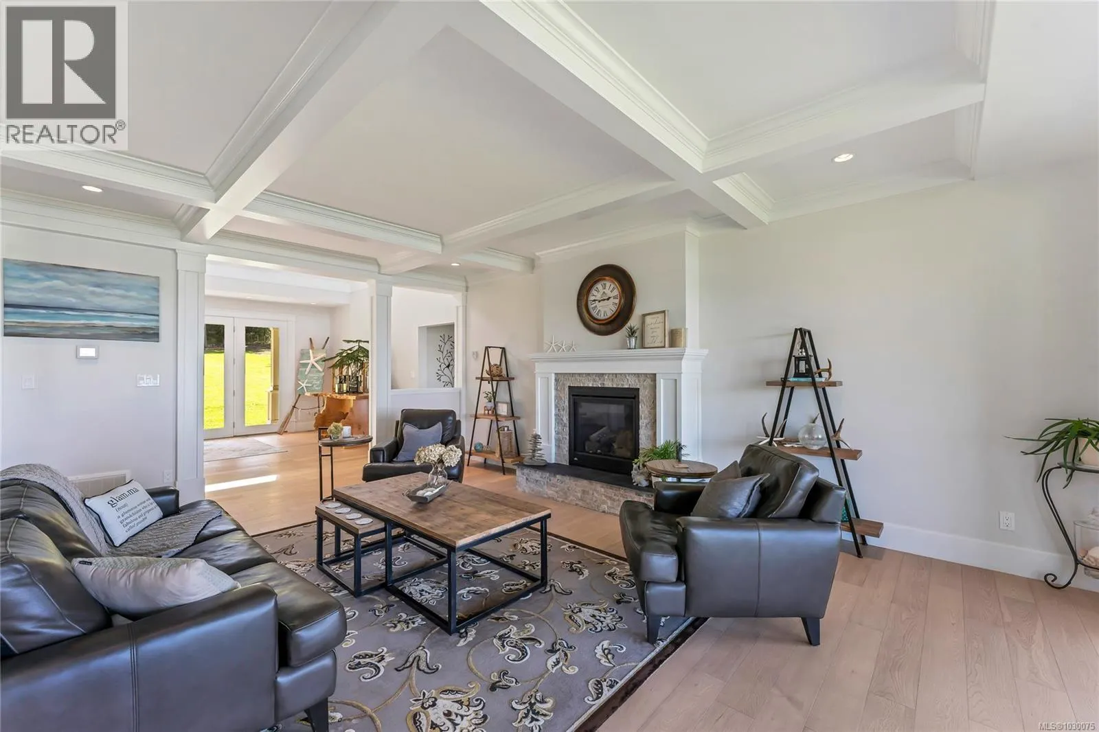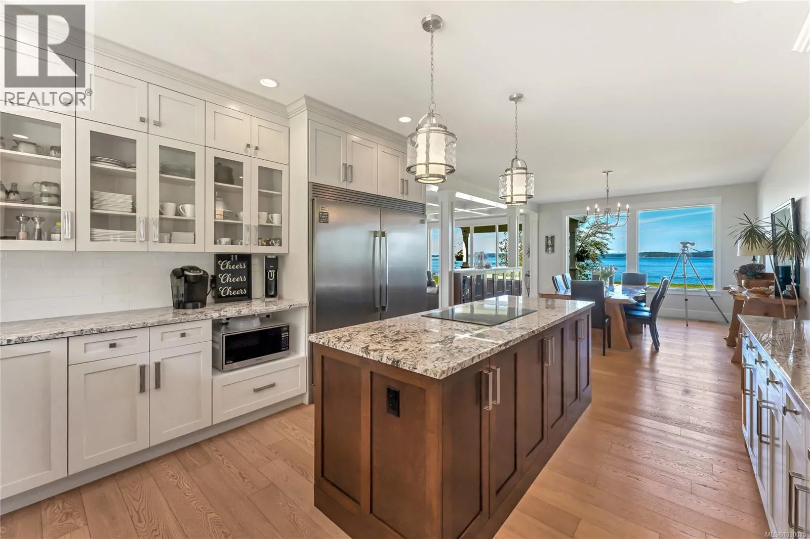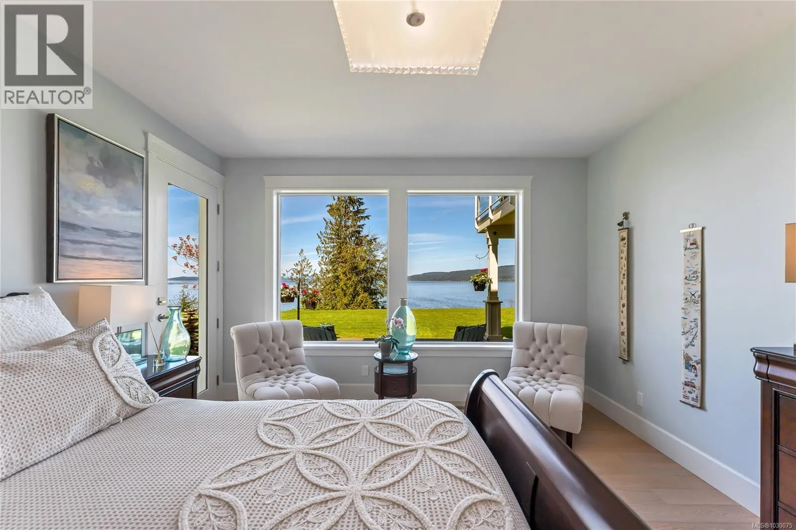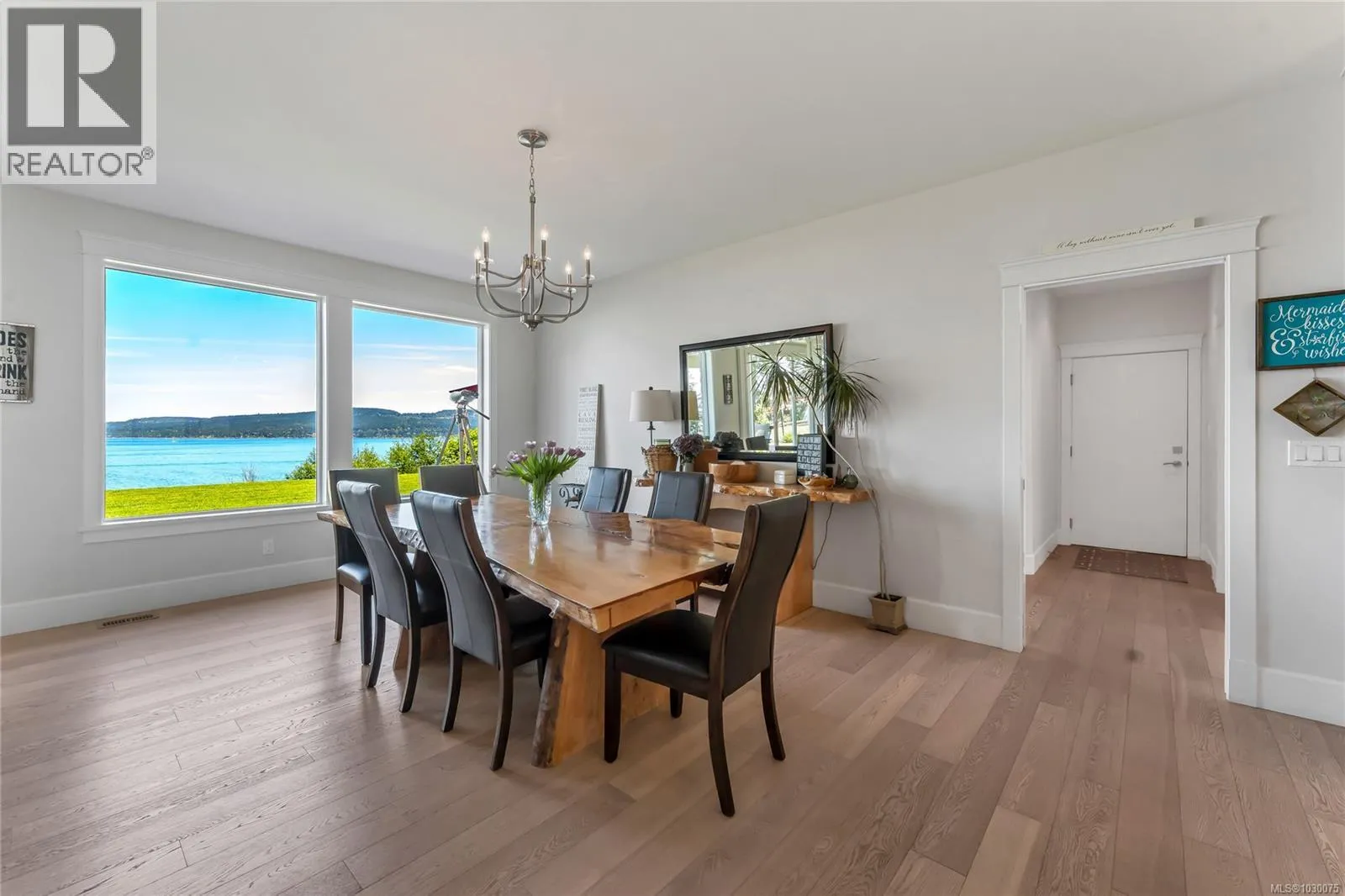 Architecturally designed, oceanfront luxury home awaits you on Vancouver Island. 4.8 peaceful acres of unobstructed waterfront /w beautifully landscaped vistas. Entering into the grand foyer you will naturally flow into the stunning living room with coffered ceilings, Turkish stone fireplace and unbelievable ocean views. The kitchen boasts high end SS appliances, custom maple cabinetry & granite which continues throughout the