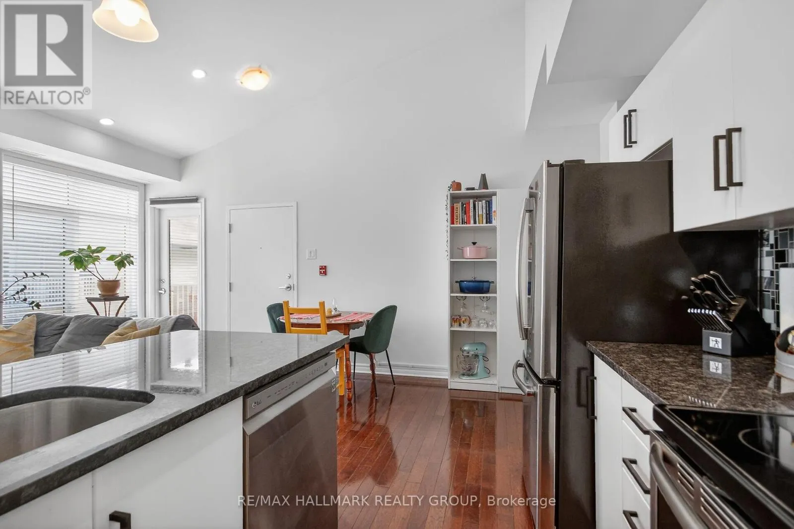 Fabulous open concept top floor condominium with two bedrooms and two bathrooms. Spacious and bright great room with amazing cathedral ceilings, pot lighting and picture windows. The gourmet kitchen features stunning granite countertops, glass backsplash, breakfast bar and stainless steel appliances. The primary bedroom suite includes a walk in closet and a beautifully appointed ensuite bathroom with an oversized