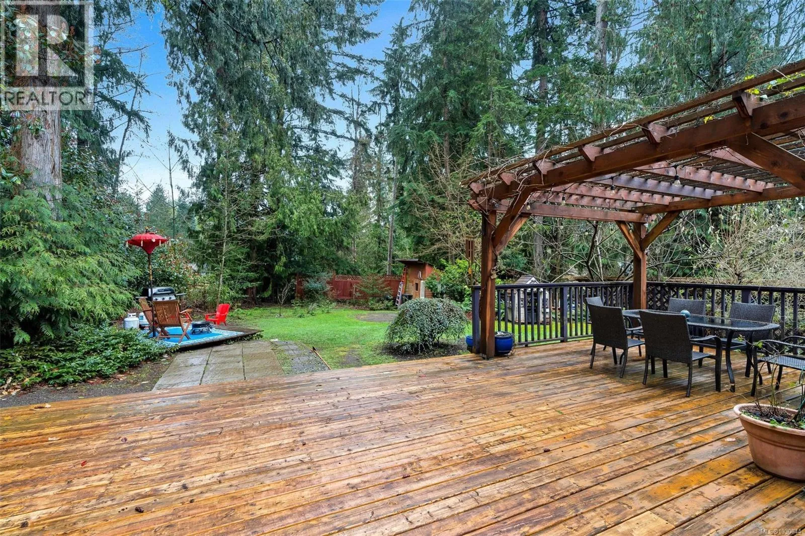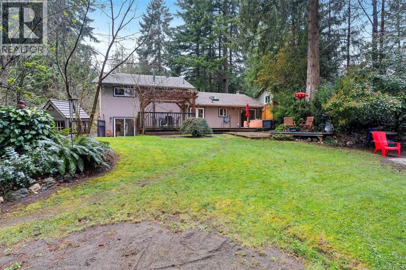 Charming 4 bed/3 bath family home in the Shawnigan Beach Estates on 1/3 of an acre. This West Coast inspired home features a large sunken living room, vaulted skylit ceiling and an electric fireplace. Both the kitchen/eating area and dining room open to a spacious deck. Sliding glass doors to the private back yard, pergola, hot tub and grill patio.