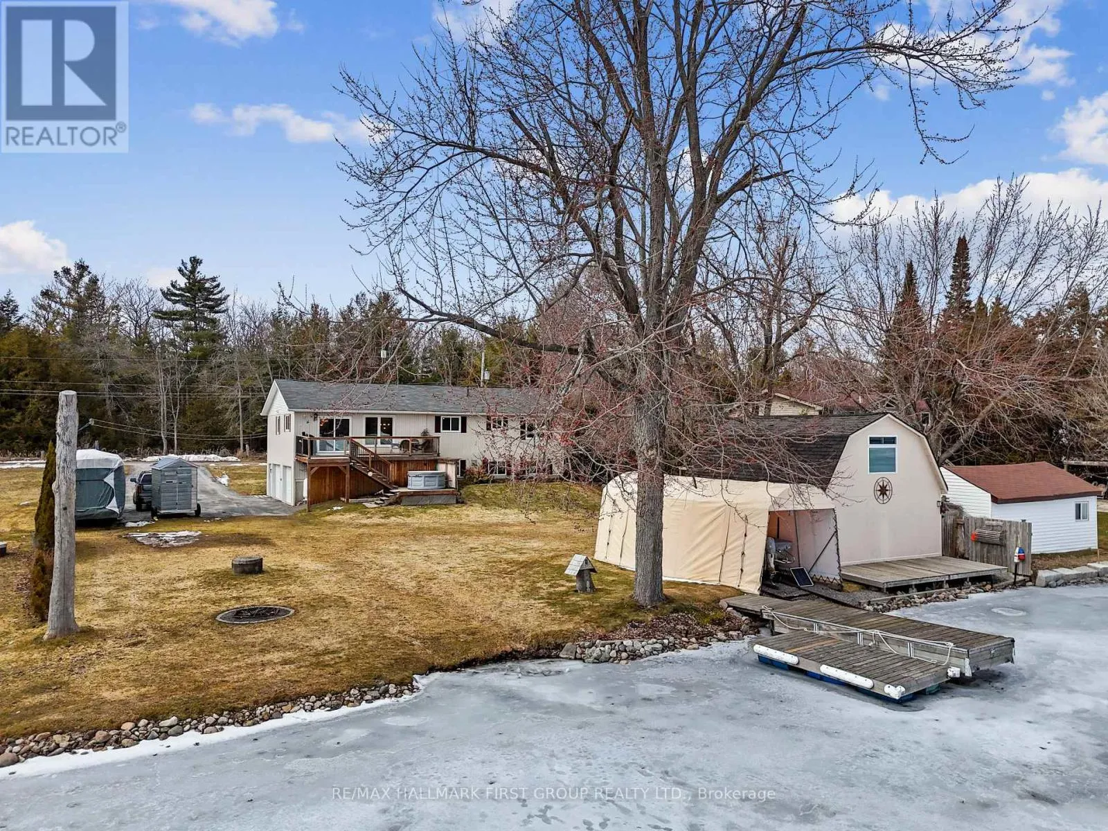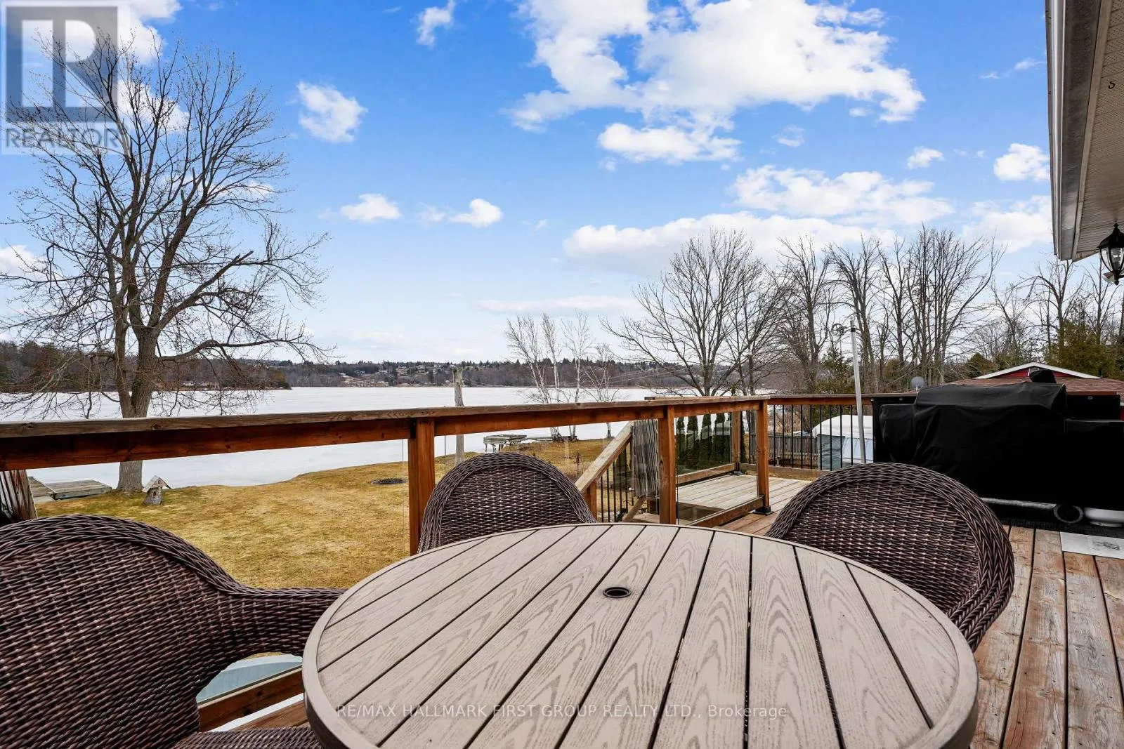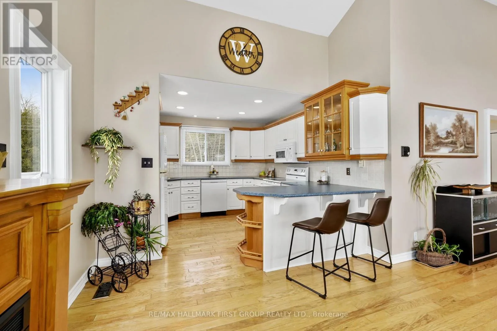 Set along the shores of Rice Lake, this waterfront property offers a thoughtful blend of comfort, functionality, and effortless connection to the outdoors, complete with an attached two-bay garage and boathouse. The main level is designed for easy living and gathering, with an open principal space highlighted by vaulted ceilings and expansive windows that frame unobstructed water views. A walkout