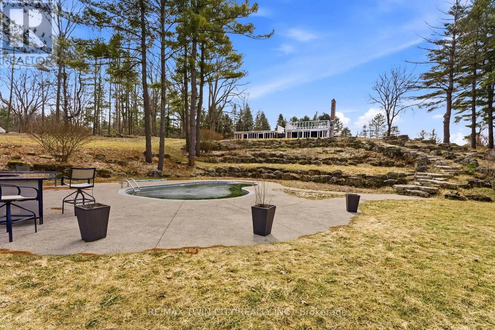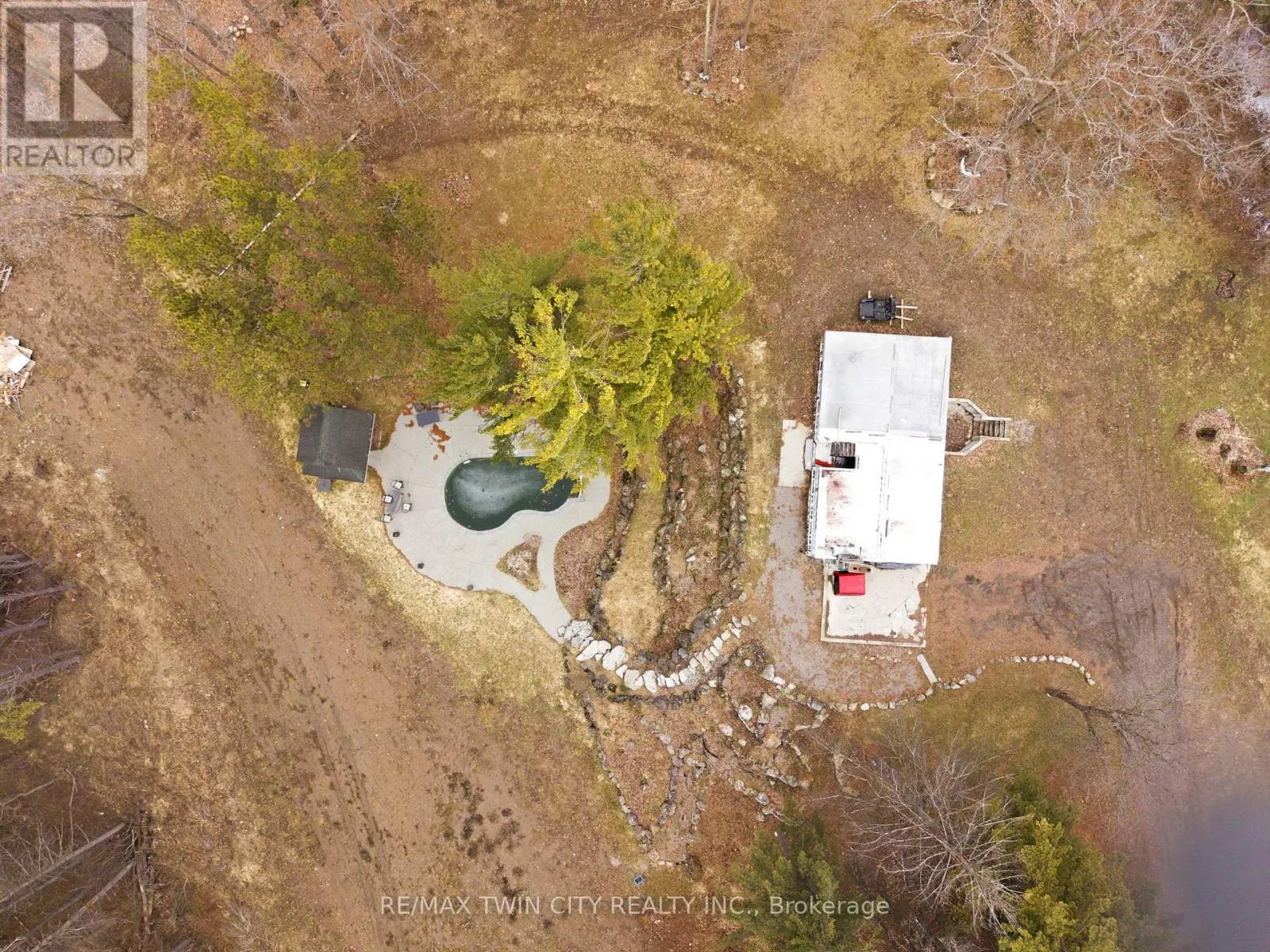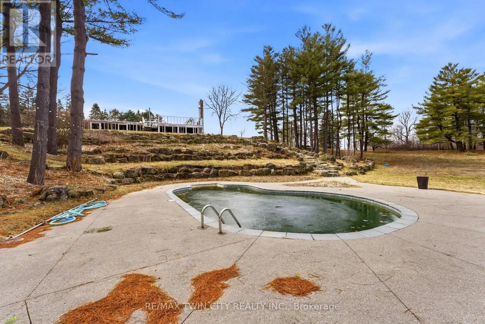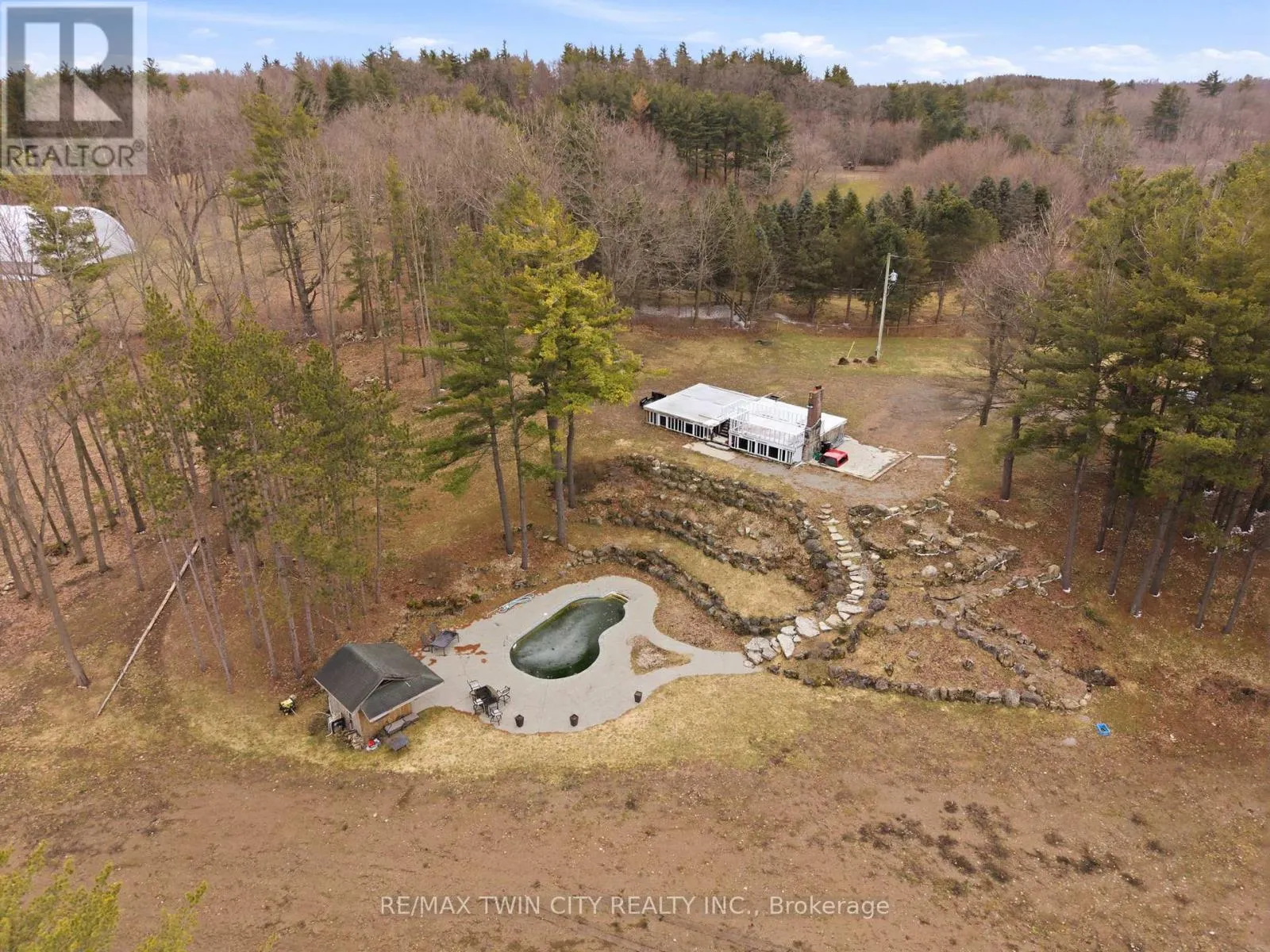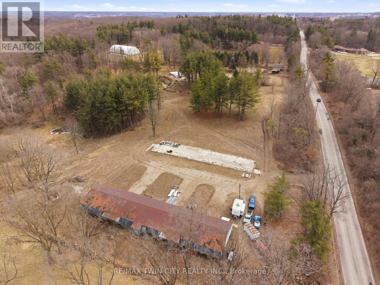 already in place make it easier to bring your vision to life. At the height of the property sits the foundation of the former home, positioned to take advantage of the elevated setting and surrounding views. Below, a terraced armour stone garden leads to the in-ground pool and pool shed, adding both character and functionality to the landscape. The property also features graded areas, thoughtfully placed mature trees, three separate driveways, natural gas service, two owned hydro poles, an existing well complete with a Grundfos SQE pump and control module, and an existing septic system. Adding even more versatility is the impressive 34′ x 155′ barn, accompanied by a matching 34′ x 155′ concrete slab and serviced with gas and hydro. With its own separate civic address, the barn is currently being renovated into three substantial shop spaces ranging from approximately 1,250 to 1,600 square feet, along with an additional 680 square foot storage or utility area. This setup offers outstanding flexibility for hobby use, storage, workspace, or potential rental income. Don’t miss out on your opportunity to create a truly special rural property that combines natural beauty, existing infrastructure, and exceptional flexibility just minutes from the city. (id:62650)