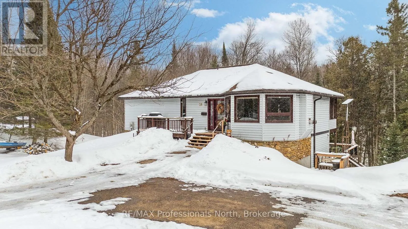 Welcome to 28 Independence Street, a beautiful home on the peaceful outskirts of Haliburton. This incredible package includes the main residence plus the adjacent separately deeded vacant lot at 16 Independence Street. Keep the heavily treed lot as a privacy buffer, or explore the potential to build or sell! Boasting a paved driveway, detached garage, and inviting front deck, this