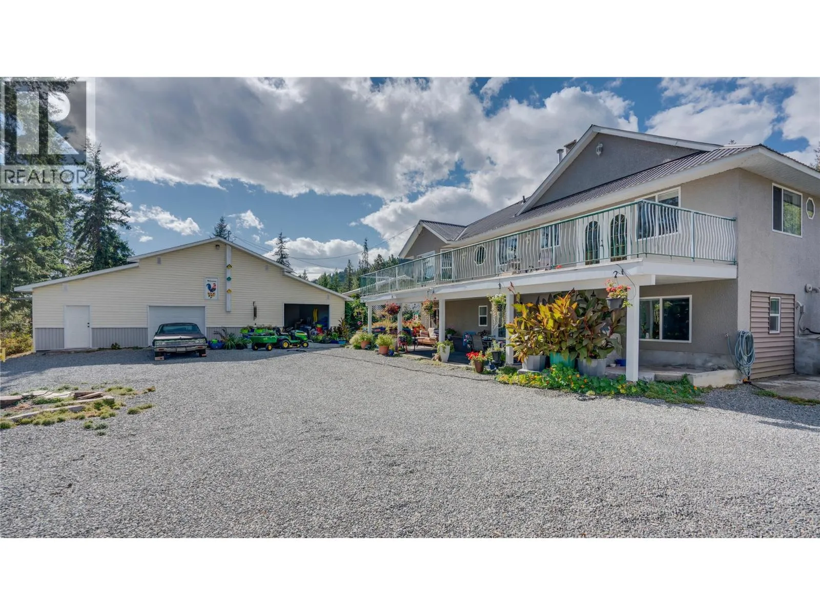 Step into a scenic blend of functionality & rural bliss at 353 Gunter-Ellison. The spacious home and out buildings are positioned to capture the spectacular view of the Enderby Cliffs and neighboring valley, while a wooded area provides a peaceful walking trail and privacy from the roadway. Upstairs, holds bright yet comforting living spaces with view facing windows and wood