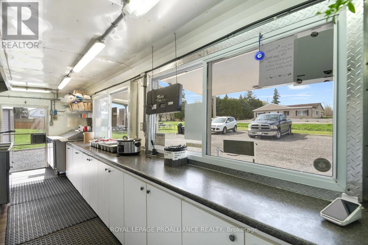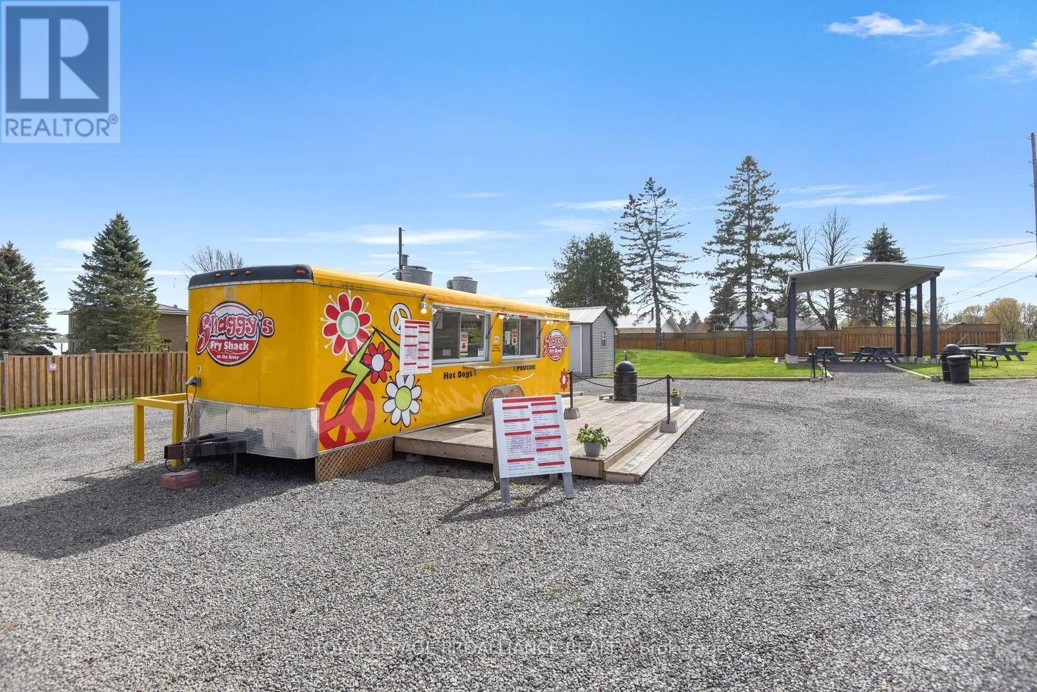 TURN-KEY SEASONAL BUSINESS WITH COMMERCIAL & RESIDENTIAL ZONING! Shaggy’s Fry Shack is a profitable, established, turnkey business located just 2 minutes east of Prescott on County Road 2. Positioned along the high-visibility Seaway Corridor, the property sits on approx. 0.6 acres and is ready for immediate operation. The pristine food truck is fully equipped with: Spotless prep area with double