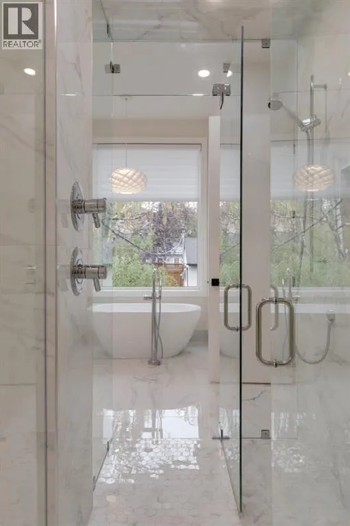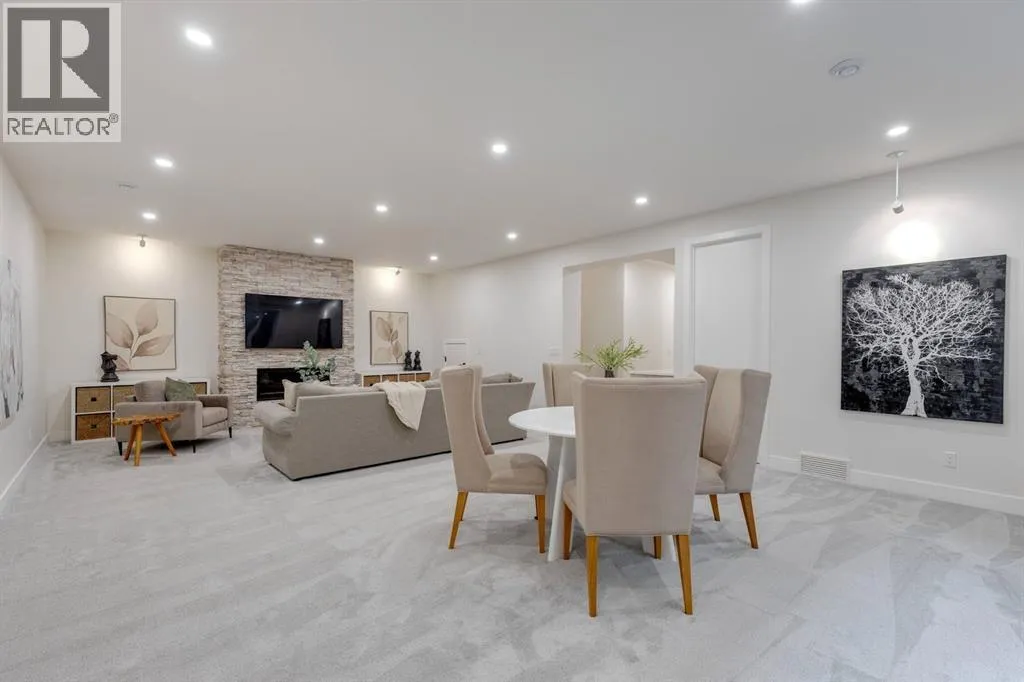 moment you step inside, soaring 10’ ceilings and dramatic floor-to-ceiling windows create an airy, light filled ambiance that seamlessly blurs the line between indoors and out. The heart of the home is a striking chef’s kitchen, where a sculptural quartz waterfall island anchors the space alongside designer Brizo fixtures and professional grade appliances, including a Wolf 6-burner gas range with pot filler, perfect for both intimate meals and grand scale entertaining. The kitchen flows effortlessly into an expansive dining area designed to host with ease and opens directly to the sun drenched rear deck. Nearby, the living room invites connection and relaxation, centred around a statement stone fireplace, coffered ceilings, and integrated sound that’s equally suited for cozy evenings or lively gatherings. As you ascent to the second level, the thoughtful design continues with a spacious laundry room, a beautifully appointed full bath, and three generous bedrooms. The primary suite is a serene sanctuary, wrapped in natural light and featuring a custom walk-in closet and a lavish ensuite complete with heated floors, a deep soaker tub, and an oversized glass-enclosed double shower for an everyday indulgence. The fully developed lower level offers exceptional versatility with its bright, above grade feel and expansive windows. Designed for both recreation and wellness, it features a large rec room with fireplace, games area, dedicated home gym, guest bedroom, and a luxurious bath with steam shower, ideal for hosting overnight guests or unwinding in style. Every detail has been carefully curated, from in-floor heating in all bathrooms (and roughed-in in the basement) to smart dimmers, custom Lightform lighting, and discreet cable management. Outdoors, the backyard unfolds as a private sanctuary that’s lush, tiered, and thoughtfully designed to create moments of calm and connection, all leading seamlessly to the oversized double garage. Just minutes from downtown, the University District, top-tier schools, parks, and pathways, this elevated home is a rare offering where sophistication, comfort, and lifestyle converge. (id:64429)