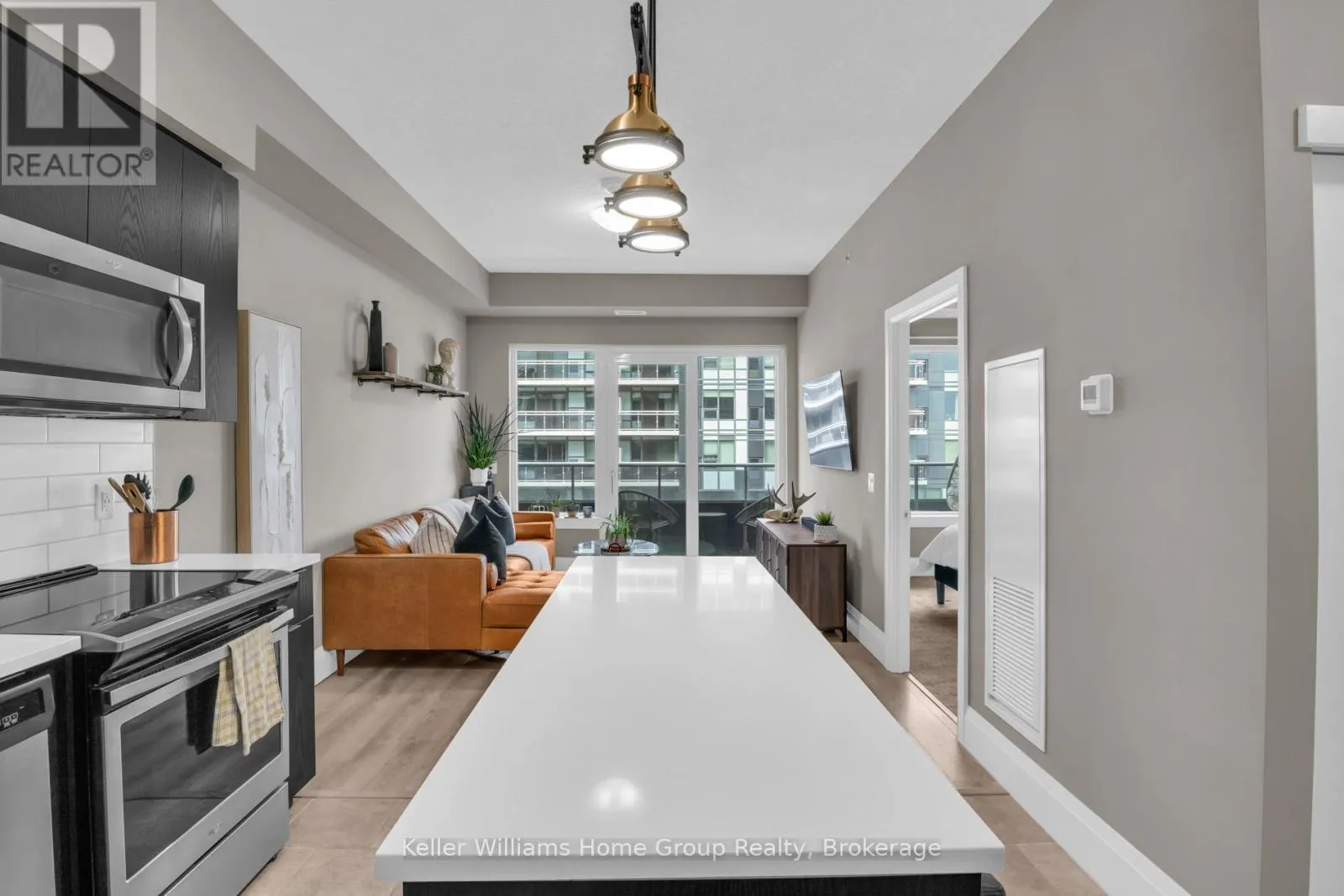 Experience modern living at the Copper Club, part of Guelph’s Metalworks community. This 5th-floor suite features a practical one-bedroom plus den layout, highlighted by soaring 9-foot ceilings and expansive windows that fill the space with natural light. The chef-inspired kitchen serves as the heart of the home, featuring Whirlpool stainless steel appliances, quartz countertops, and an oversized island designed for