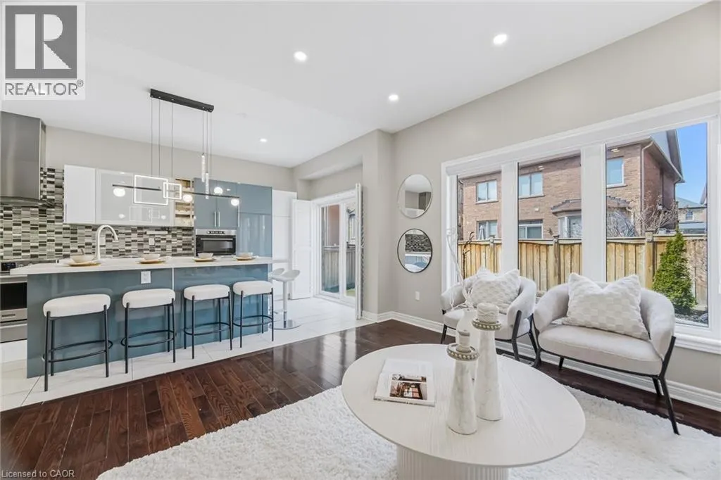 Immaculate, move-in-ready Fieldgate-built semi-detached home with premium upgrades throughout, offering 3+1 bedrooms and 4 washrooms in a sought-after Milton neighbourhood. Step inside through the inviting front porch into a bright and open main level featuring 9-ft ceilings and hardwood floors throughout. The spacious living and dining areas flow seamlessly into the heart of the home – a fully renovated and