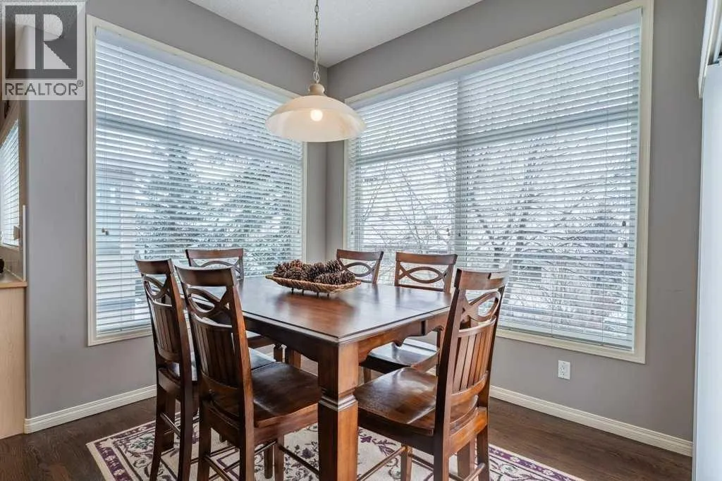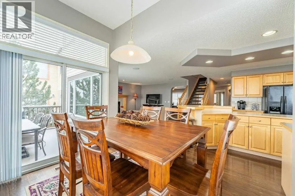 the moment you arrive, the care is evident. The Craftsman Style exterior has been refreshed with repainted wood trim and decorative corbels, while recent mechanical upgrades—including a new furnace, new central A/C (Dec 2025)—provide peace of mind for years to come.Inside, the home is immaculate. A thoughtfully designed layout features 5 bedrooms (4 up, 1 in basement), extensive built-ins, and refined finishes throughout. The spacious main floor office is ideal for working from home, while the east-facing backyard and breakfast nook are filled with beautiful morning light—perfect for quiet starts to the day.The kitchen with maple cabinetry, large island, and raised eating bar flows effortlessly into the breakfast nook and inviting great room with fireplace, while a semi-formal dining space adds flexibility for entertaining. From the main entry, you can view the entire main floor, as upgraded open risers allow light to flow through the entire main floor. Upstairs offers 4 bedrooms and a built-in study area, ideal for growing families (homework? reading nook?) The primary suite is a comfortable retreat, complete with a 4-piece ensuite featuring a corner soaker tub, separate shower, and walk-in closet.The fully developed walkout basement is bright and flexible, featuring a separate walkout entry, a full bathroom, and space ideal for an older child, nanny, or professional office /esthetician/ day care etc. — also perfect for multigenerational living or separate work/study zones. The former show home office space provides privacy while keeping you connected to the lower level with a window open to the main area.Step outside to a fully fenced and landscaped yard, offering privacy and room to relax.Enjoy the convenience of being just minutes to Westhills Towne Centre, Aspen Landing Shopping Centre, top-rated schools, and quick access to downtown or the mountains via Bow Trail and Stoney Trail. Nearby pathways and green spaces, including Griffith Woods Park, offer year-round outdoor enjoyment.A rare combination of location, layout, and meticulous condition—this home truly stands apart and shows 10/10. (id:62650)